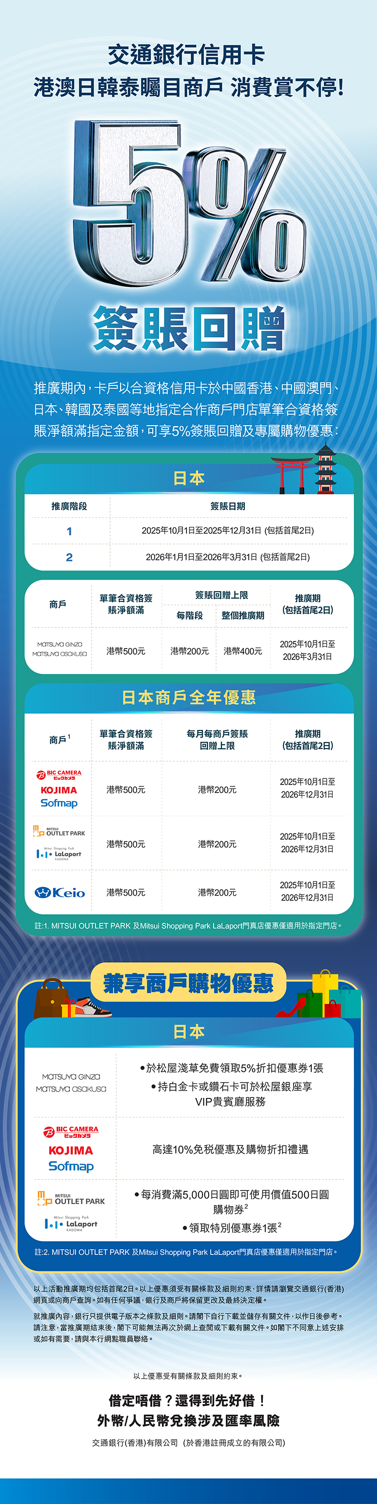 「日本京王百貨店購物禮遇」推廣條款及細則詳情請按此