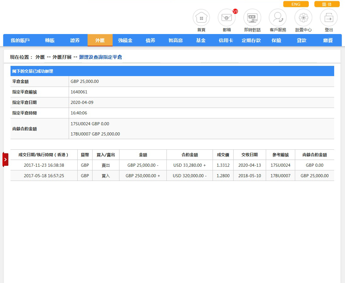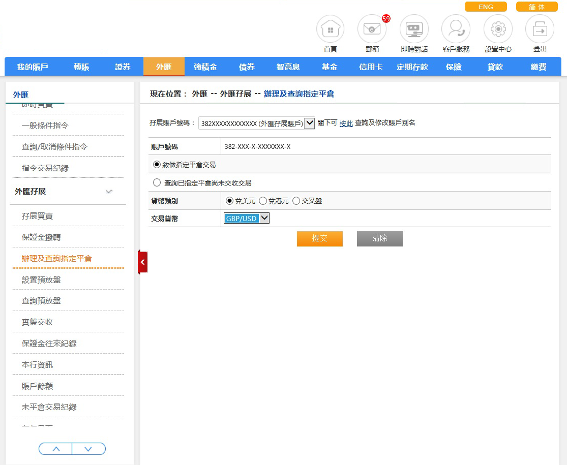 請選擇敘做指定平倉交易,完成後請按「提交」。如欲重設,請按「清除」。