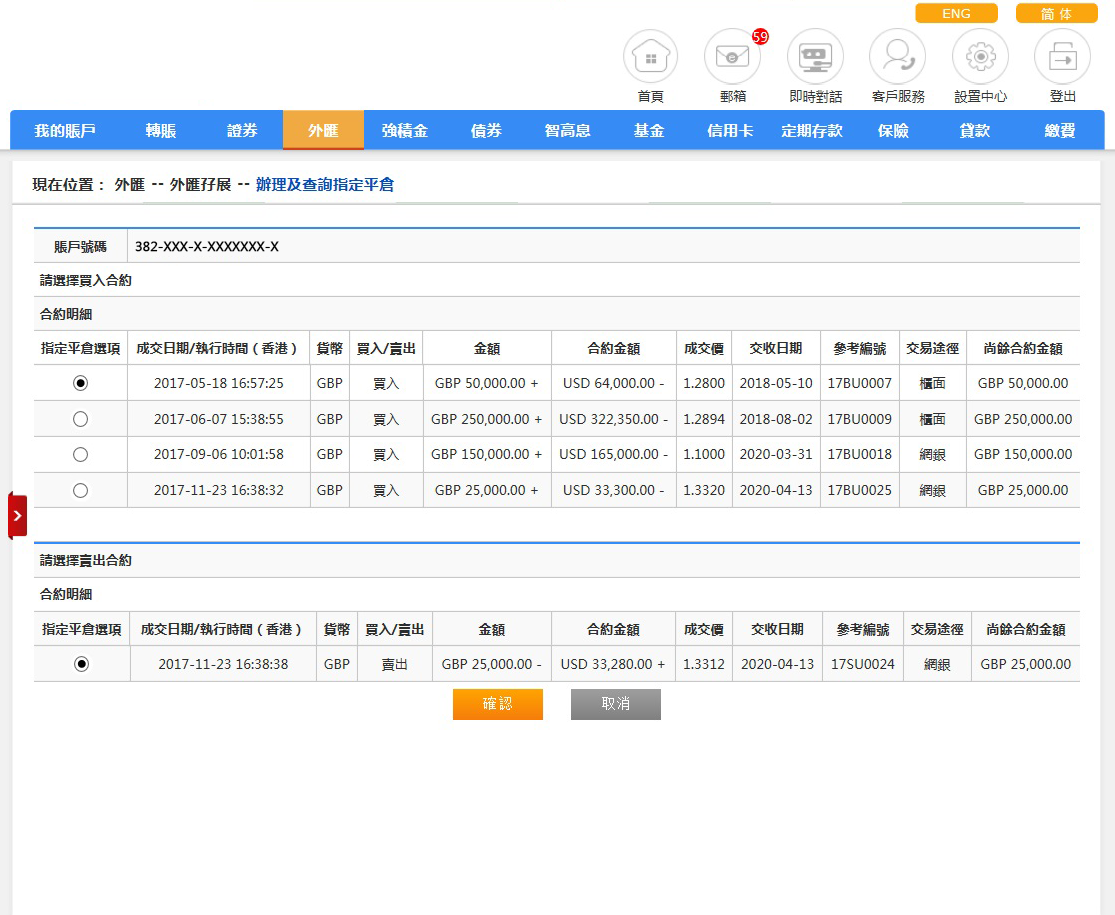 請選擇指定平倉的合約,完成後請按「確認」或「取消」重置。