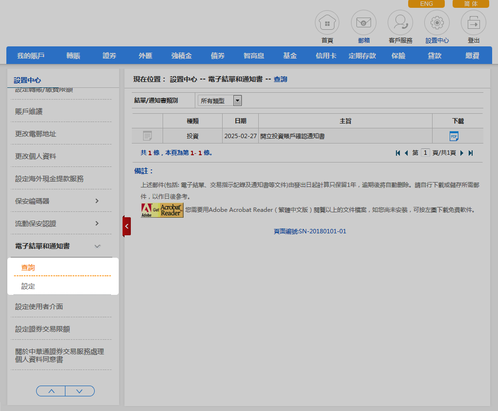 - 設置收取電子結單和通知書以及電子結單提示方式。