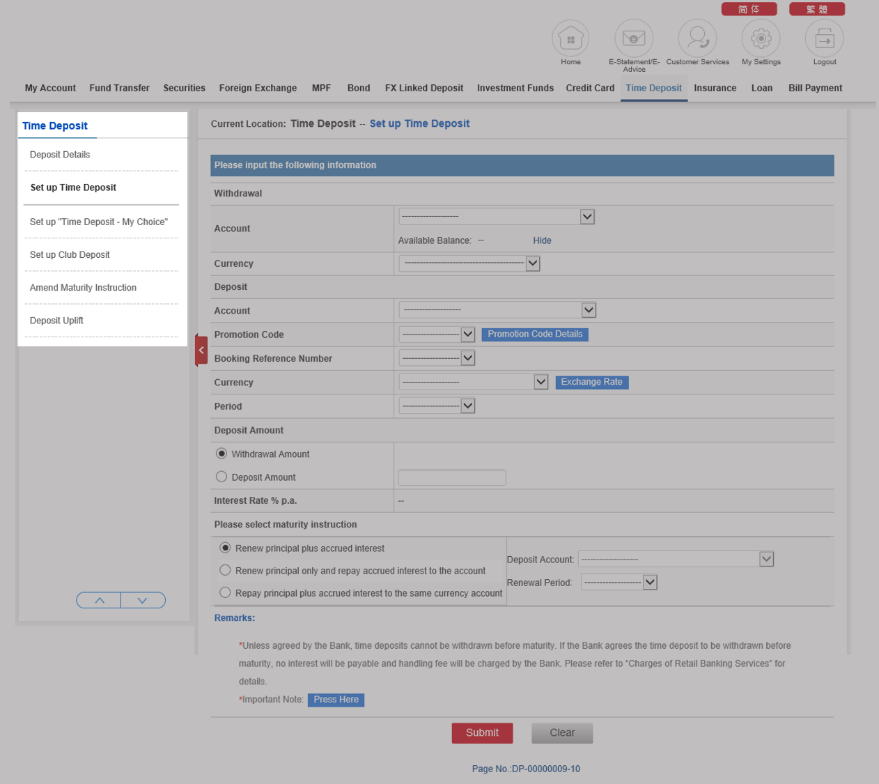 | • | Set up "Time Deposit - My Choice" - Open "Time Deposit - My Choice" in HKD by withdrawing corresponding amount of deposit in your savings / current account |