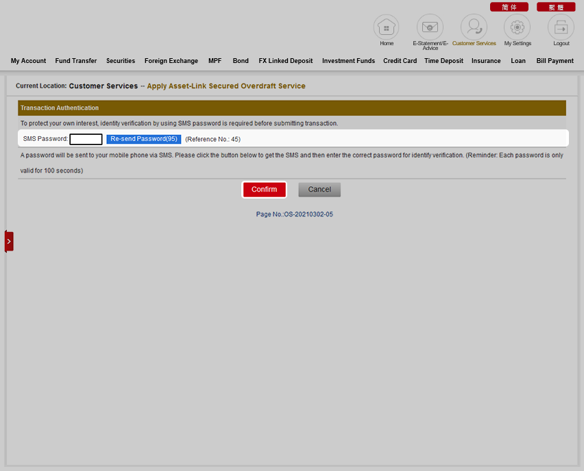 After selecting "Confirm", customers need to enter the One-time Password. Please select "Confirm" to proceed.