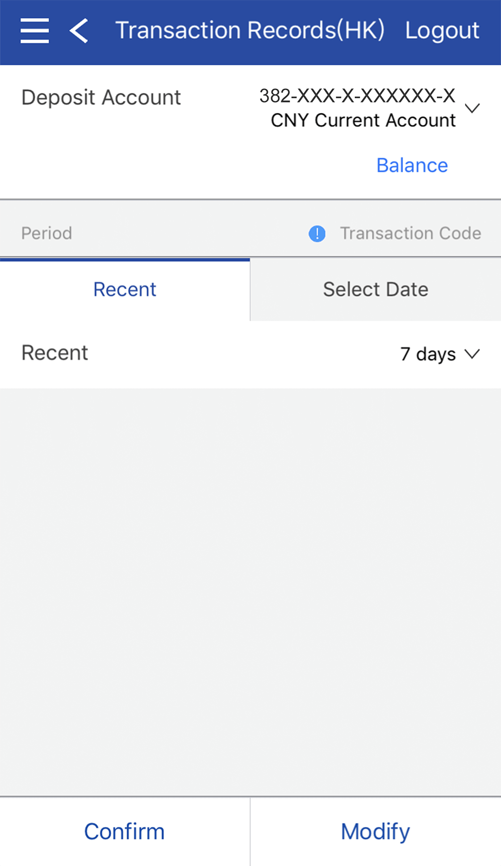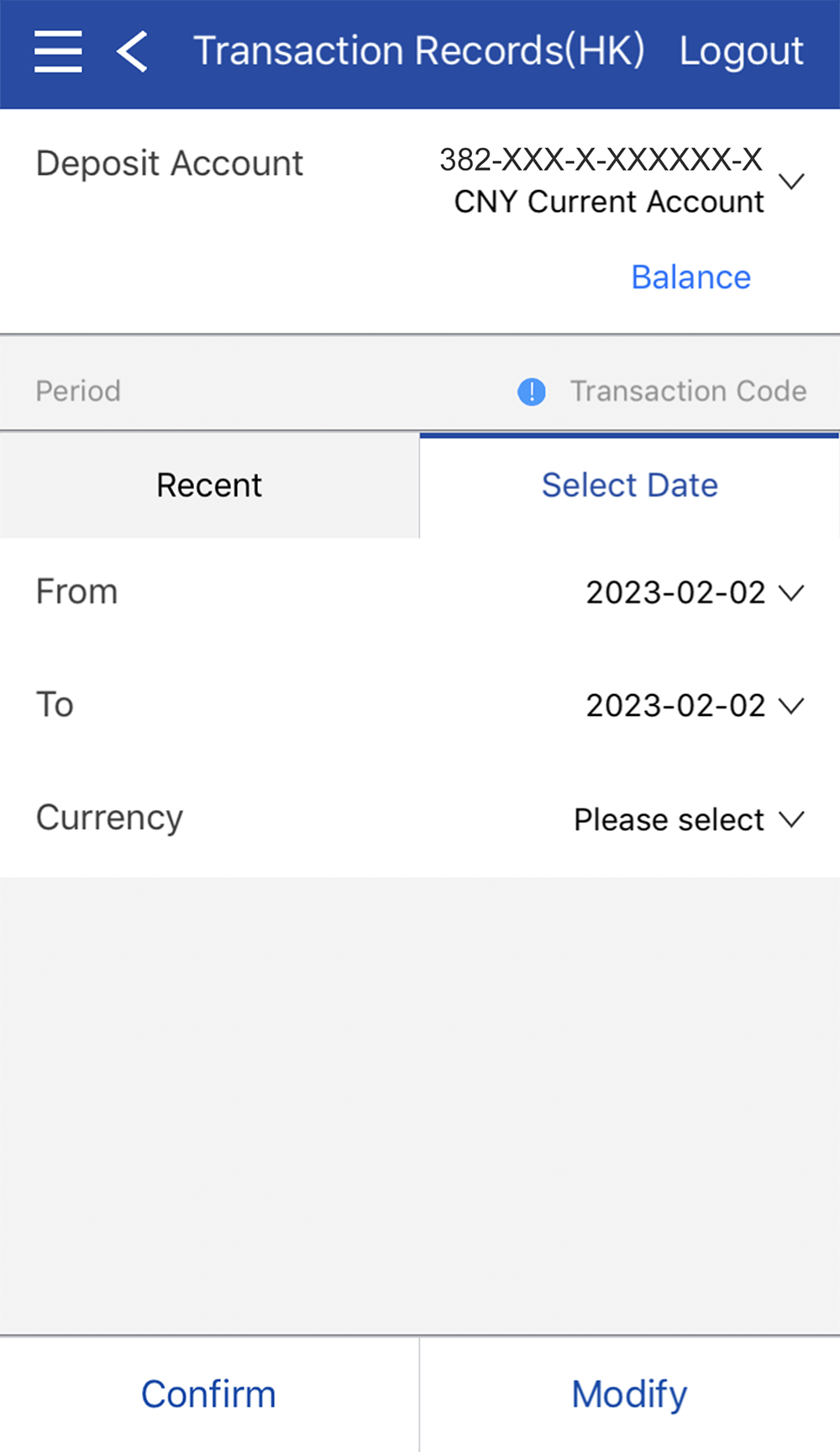 Select Deposit Account from the account drop down menu, able to search up to 45 days transaction records