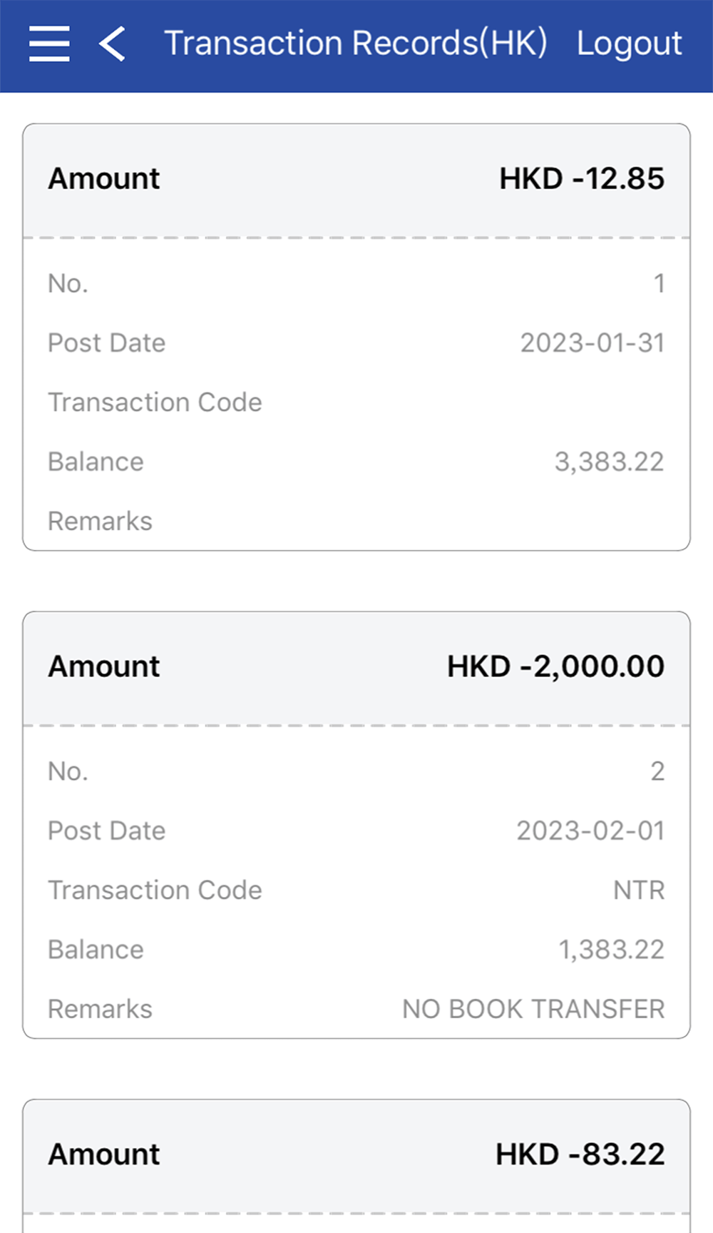 Related transaction records will be displayed on the screen
