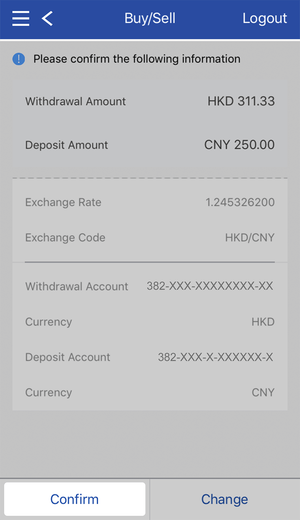 * Customer may press Balance and Exchange Rate Enquiry for more information