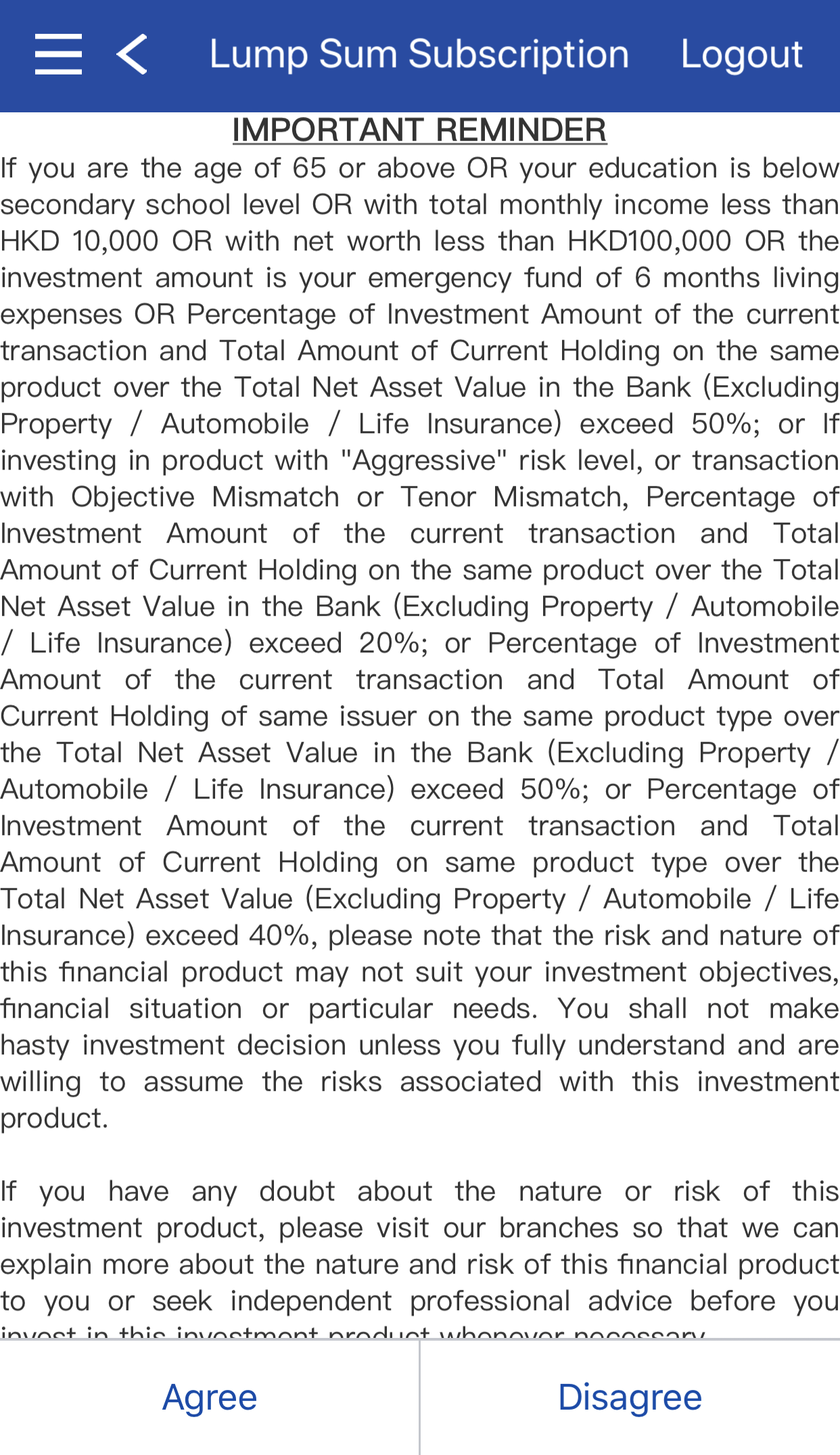 Read and agree to Important Reminder, Risk Disclosure and Important Notice, fund information and other association information.