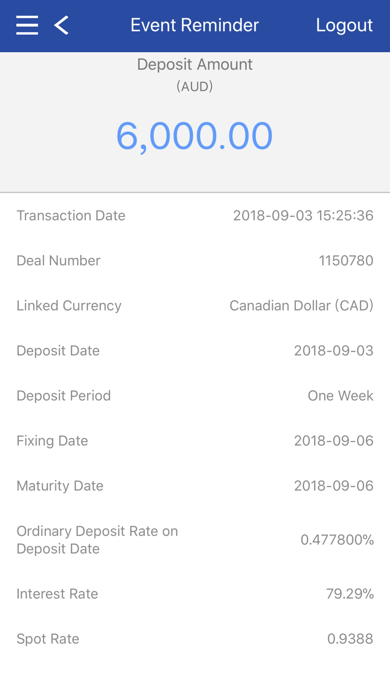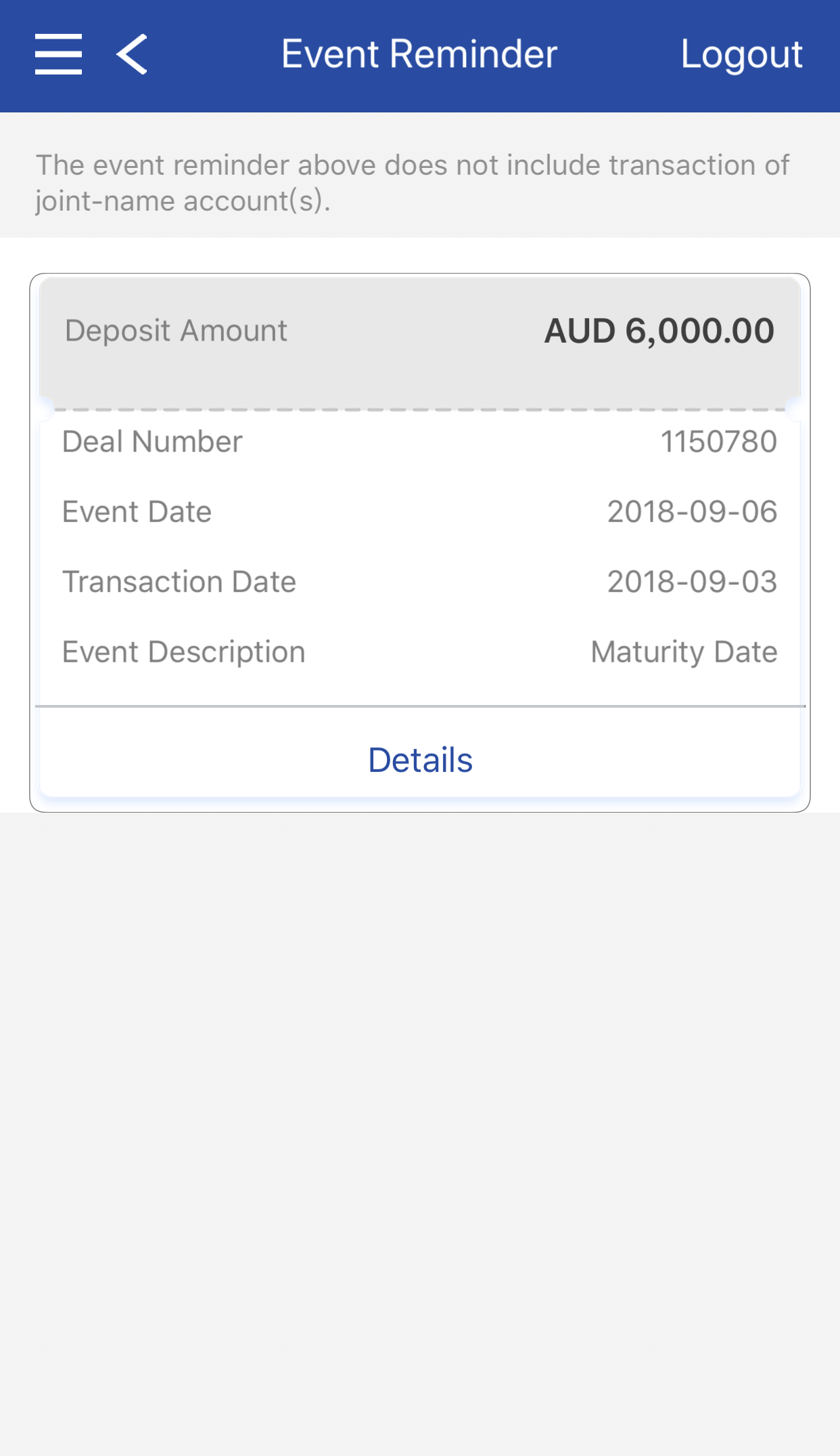 "Event Reminder" allows customers to enquire the existing Deposit EXTRA transaction information.
