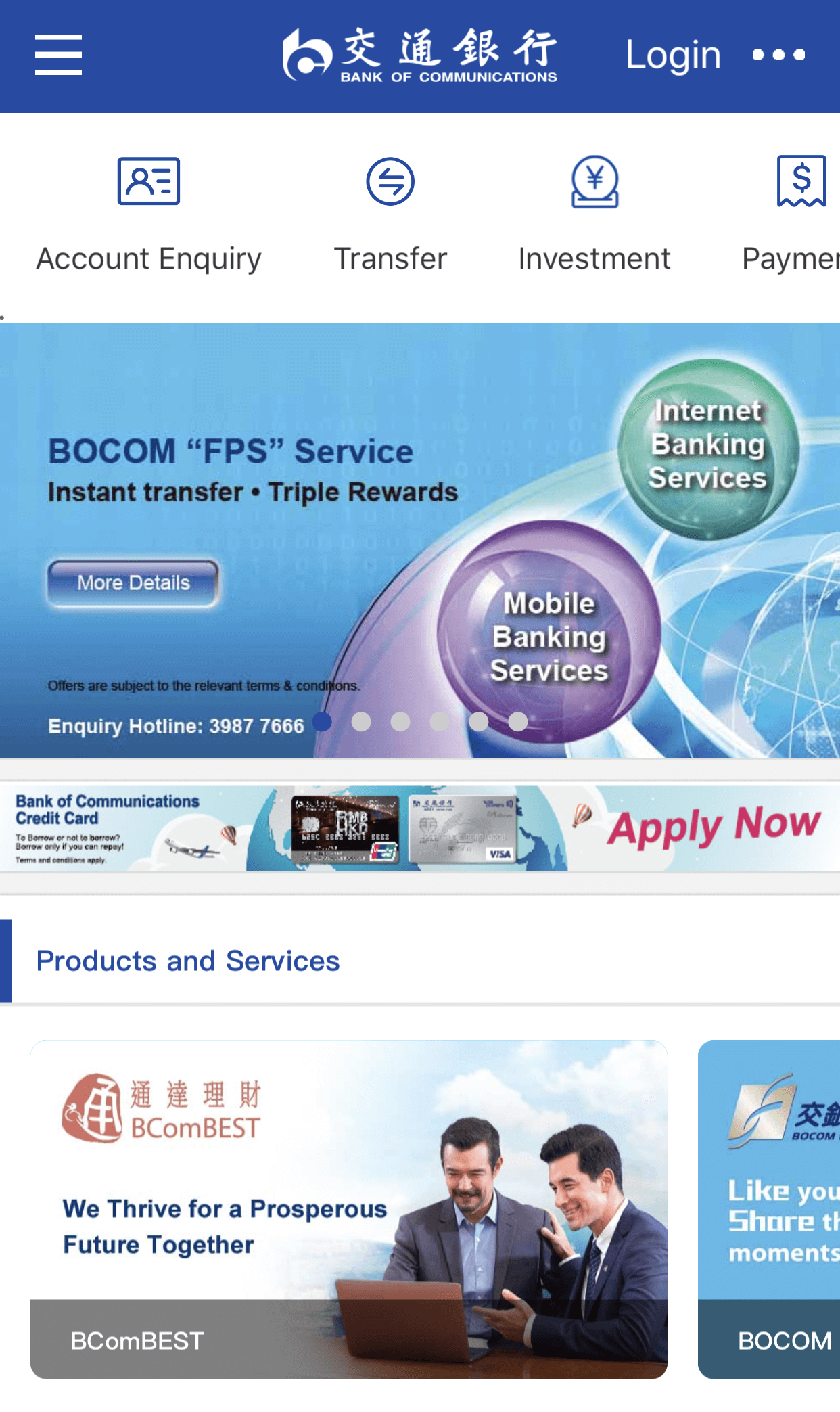 Customer can review the latest Hot News, Products and Services of our Bank.