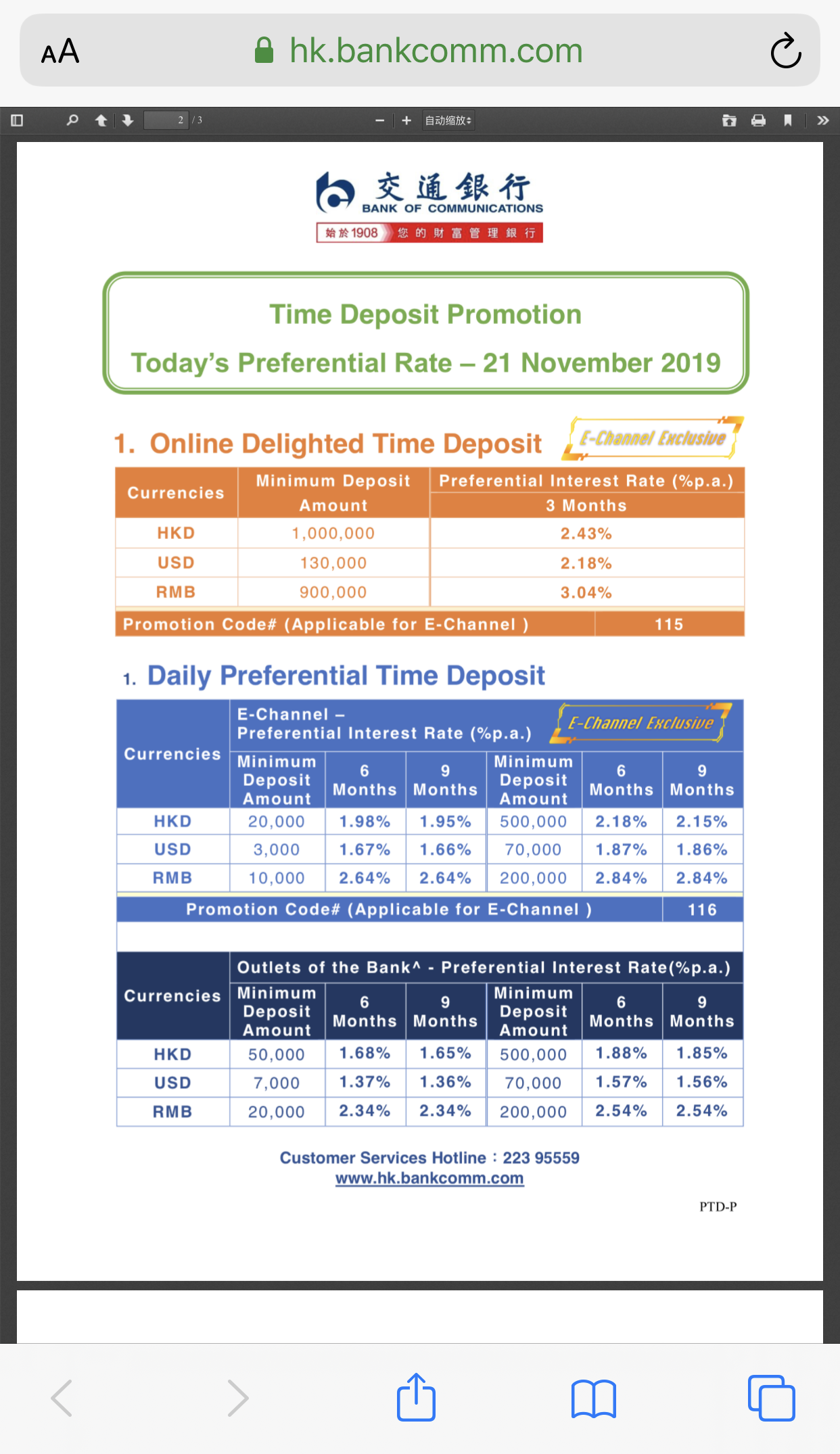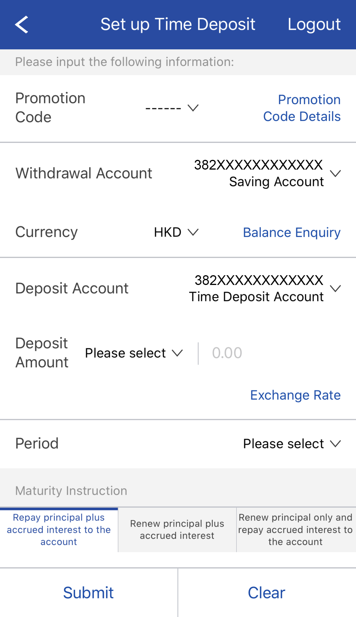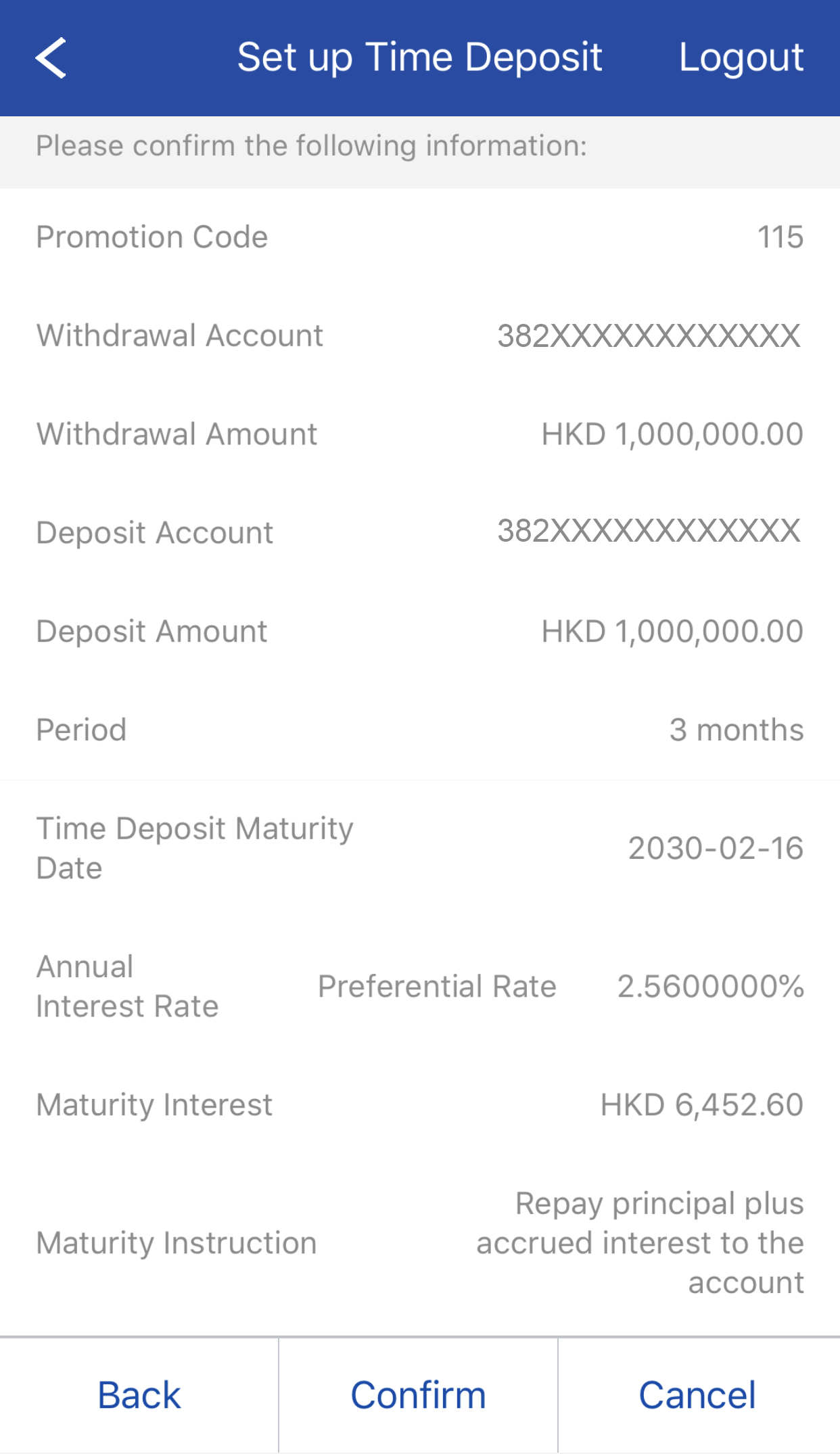 You can also press Promotion Code Details to view time deposit promotion information.