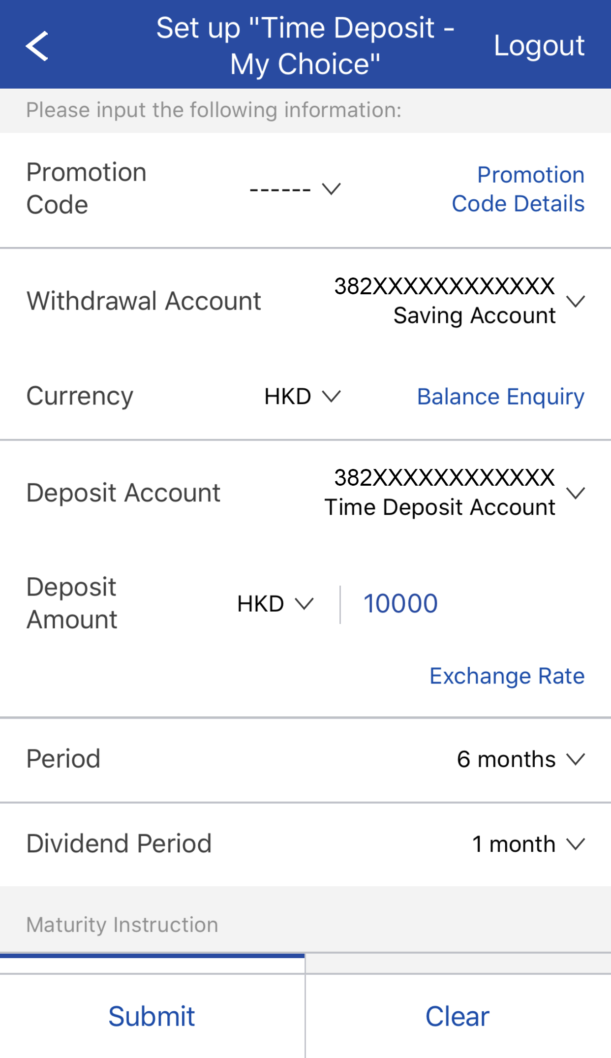 You can also press Promotion Code Details to view time deposit promotion information.