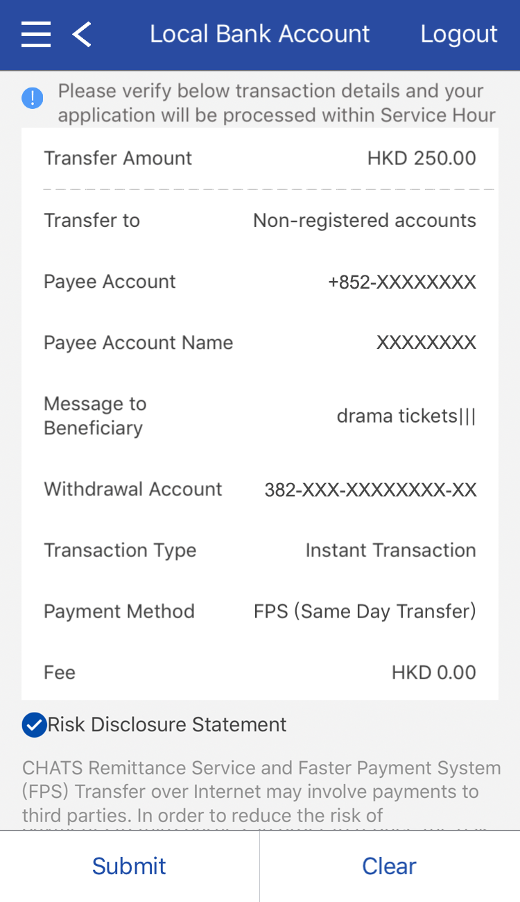 You may choose FPS (Instant Transfer) or FPS (Same Day Transfer) as the Payment Method and click Submit.