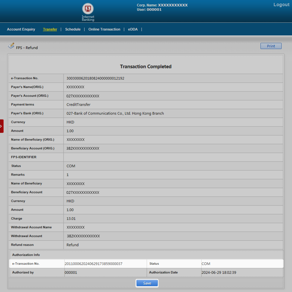 Note: Only allow to refund the incoming payments via FPS within 30 Calendar Days upon receipt.