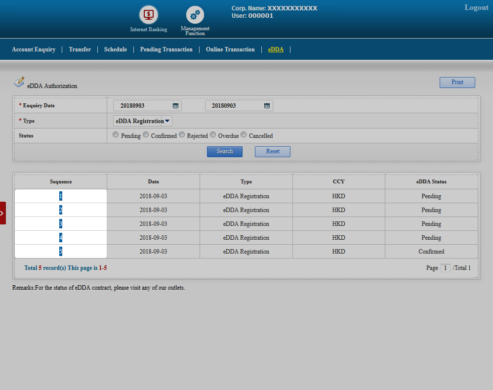 Note: You can Approve or Reject eDDA instructions within 5 Calendar Days upon receipt. Otherwise, eDDA instructions will expire.