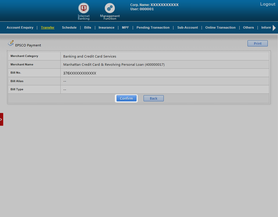 Please confirm all information input correct, proceed double verification and press Confirm to continue.