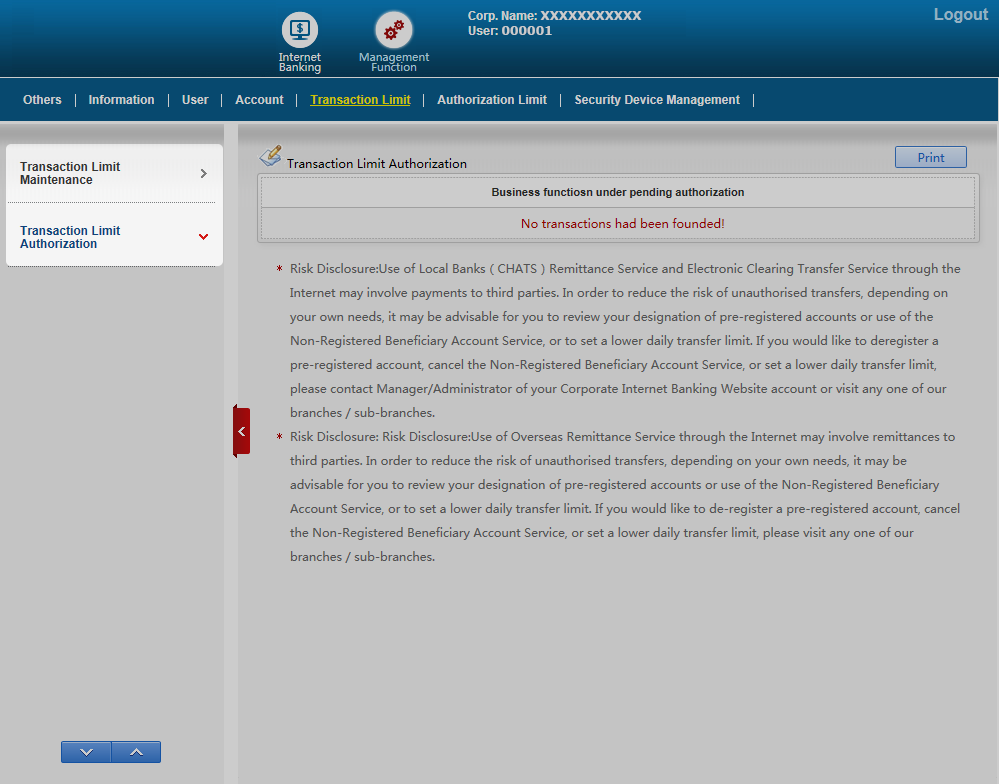 - Enable to review and amend the Transaction Limit