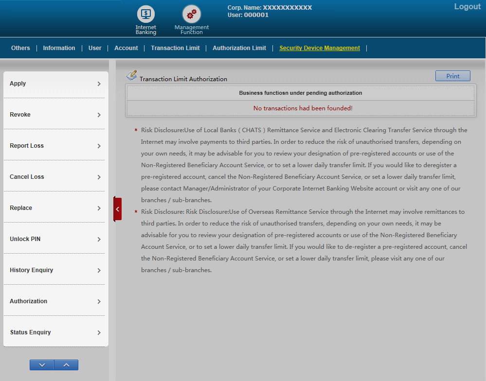 | • | Unlock PIN - Apply for unlock the Security Device Pin |