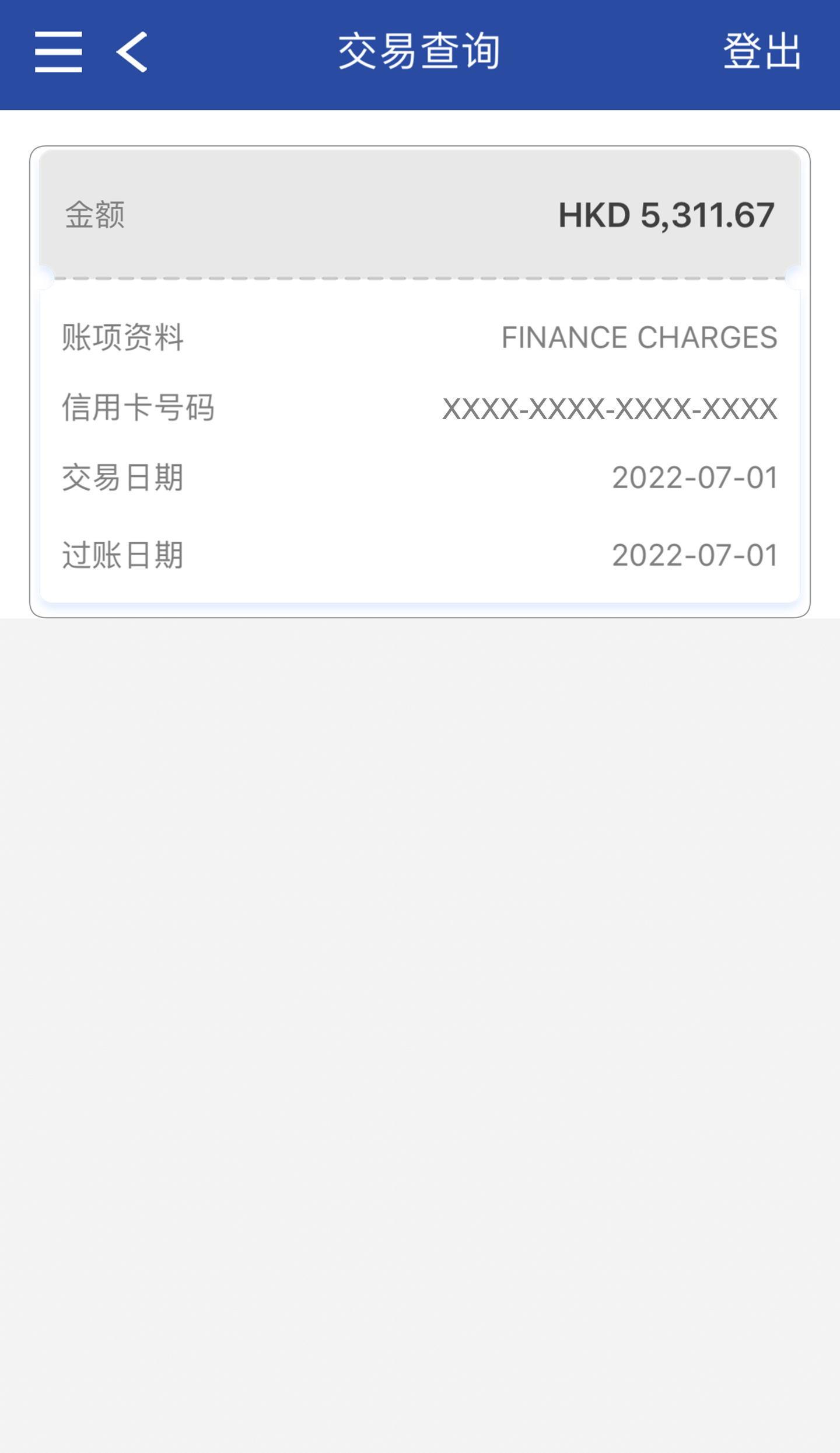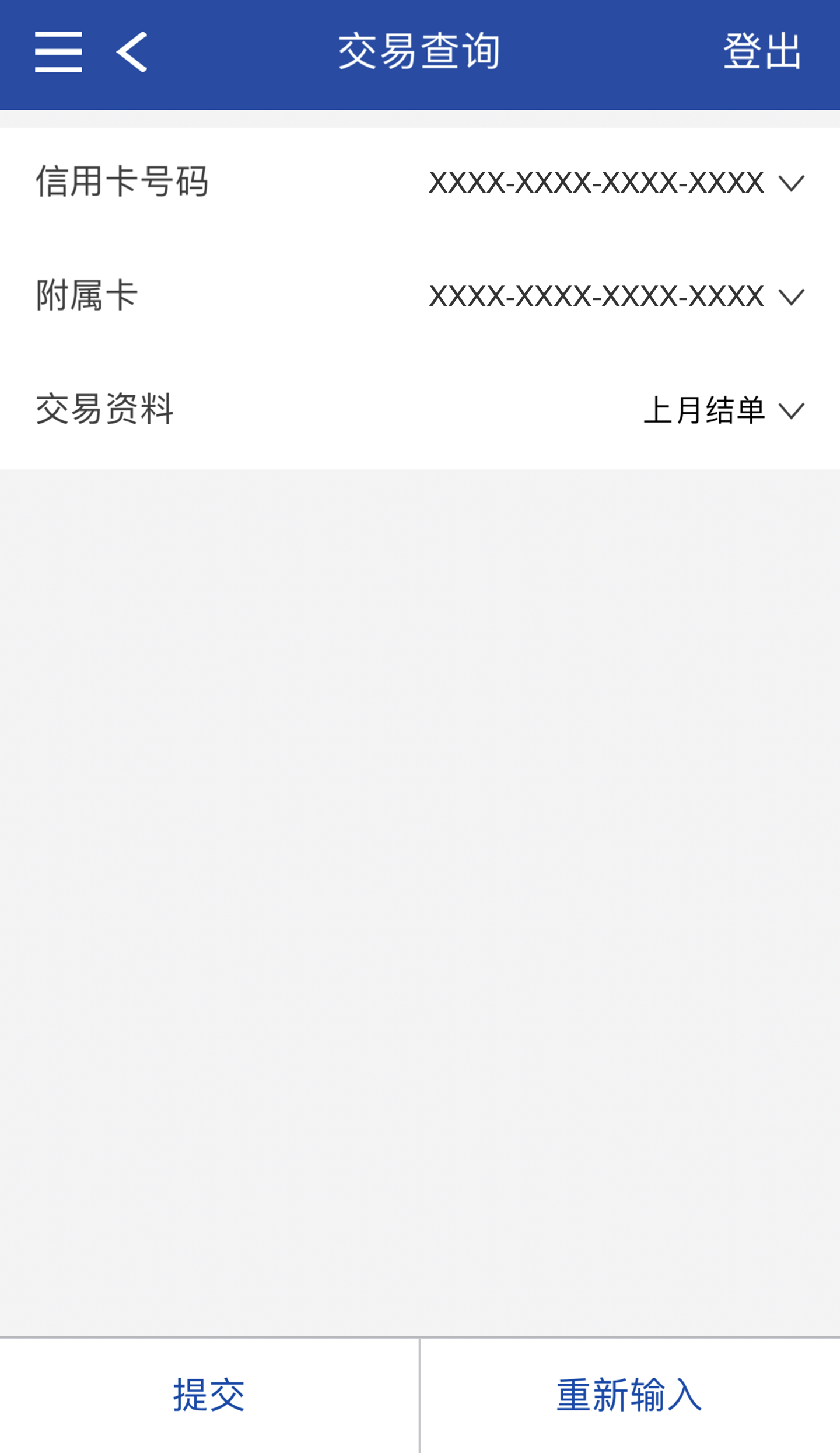 根据筛选条件显示相关信用卡交易资料。