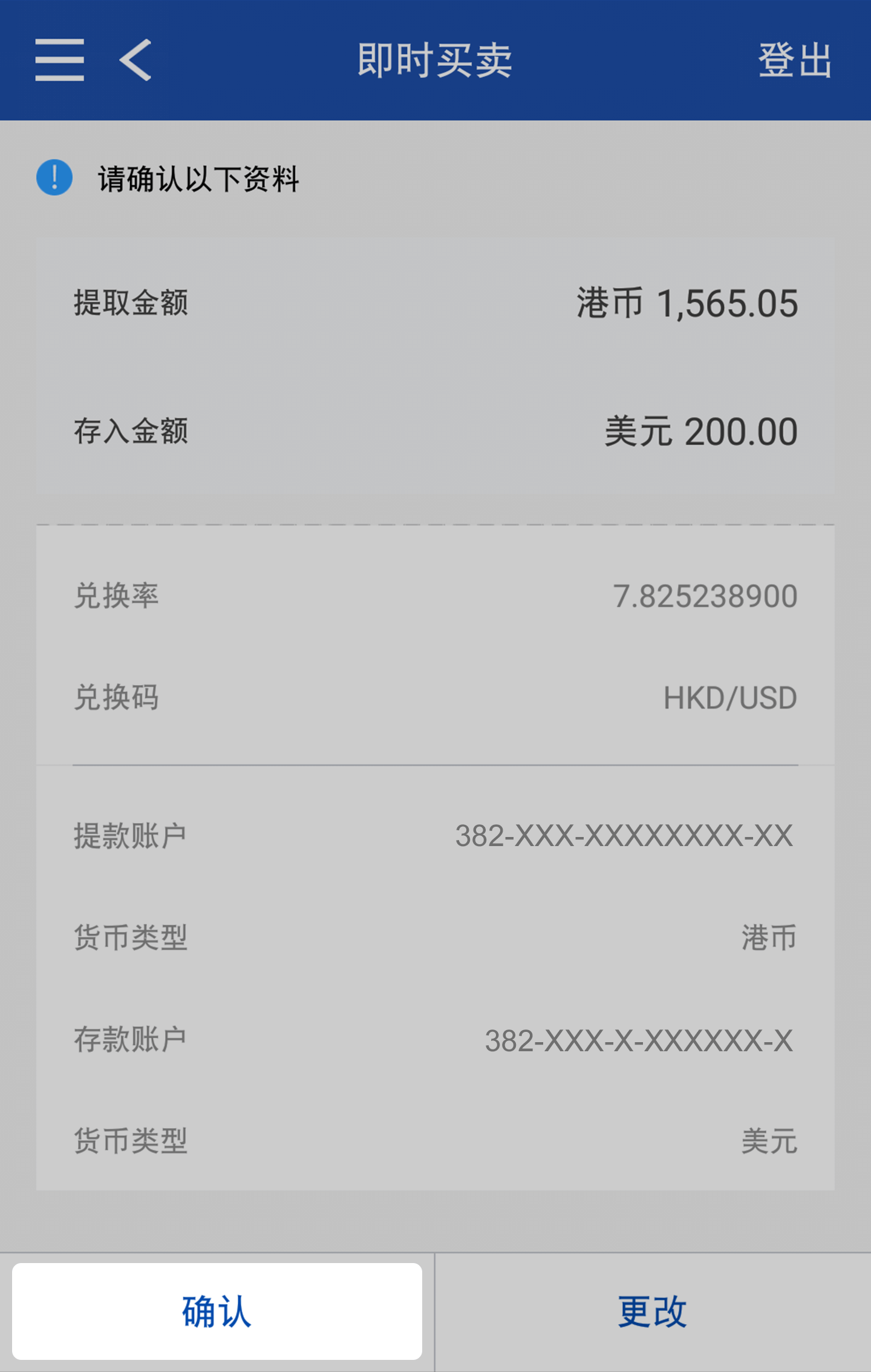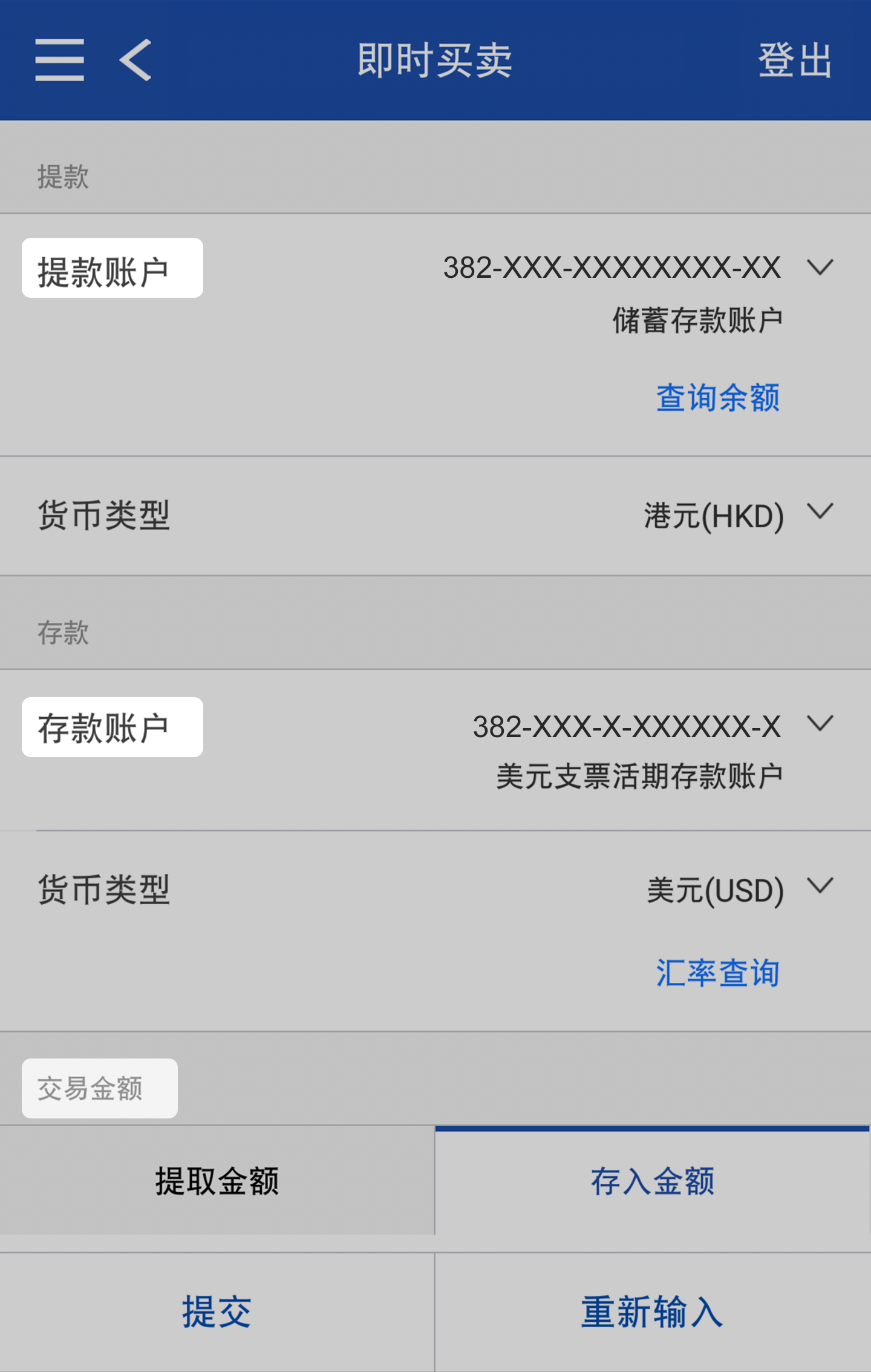 查询馀额及汇率