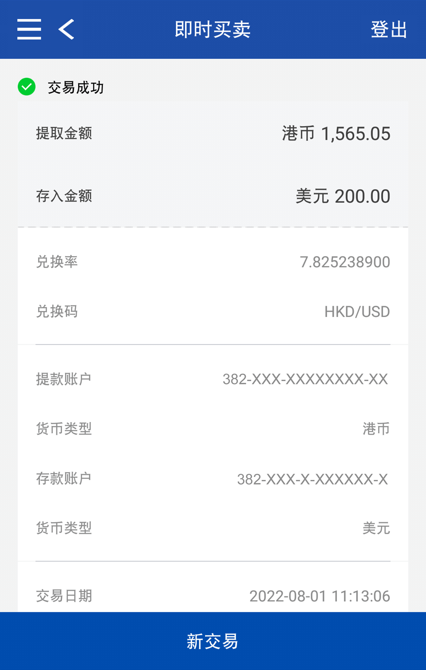 交易成功后,版面会显示交易详情。