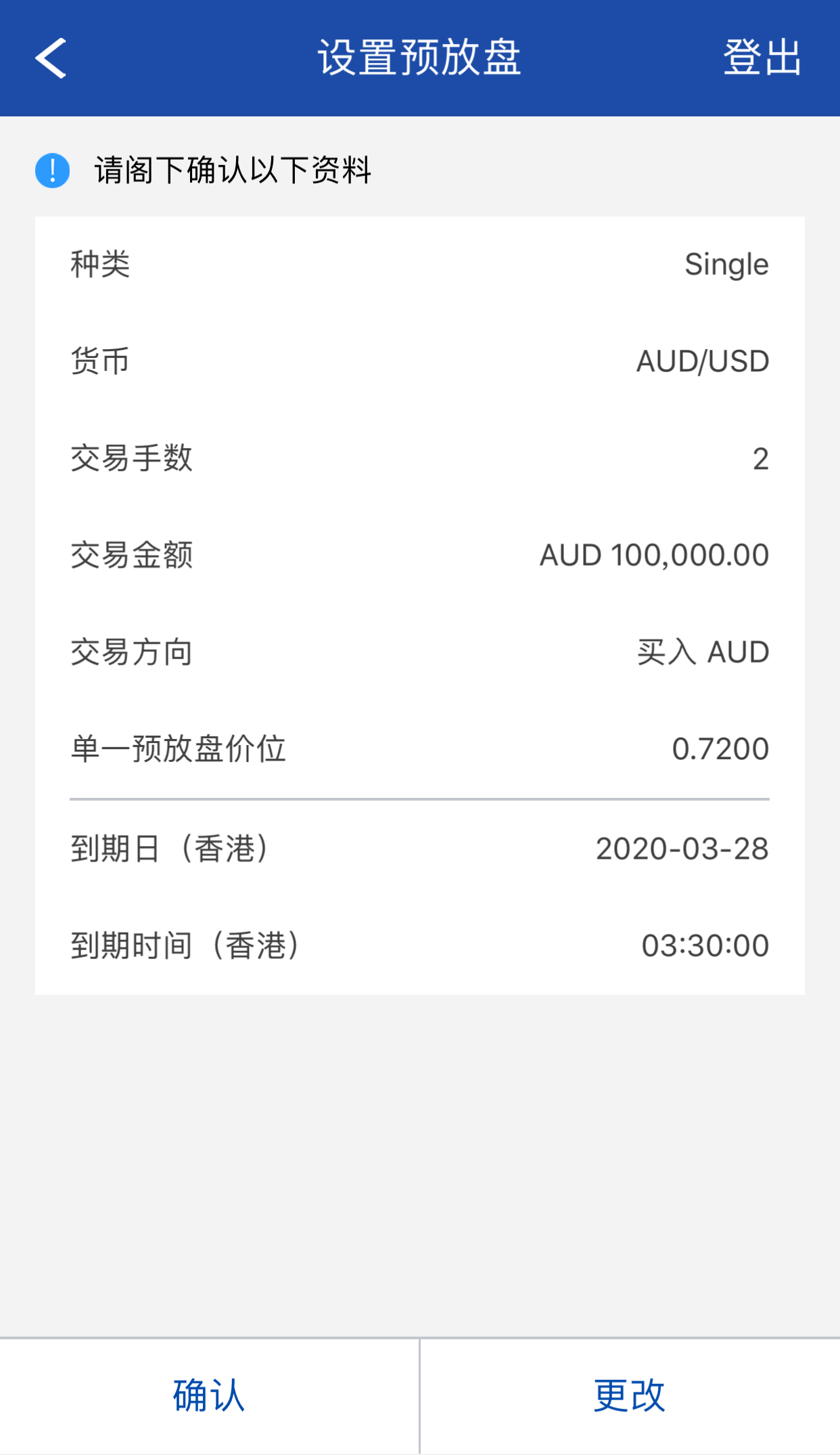 检查交易资料无误并按确认,如欲修改交易资料可按更改。