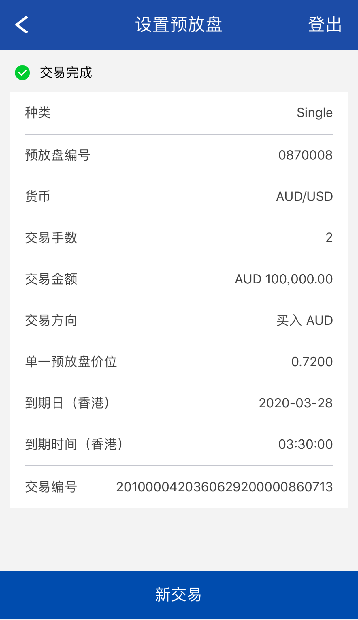 交易完成。