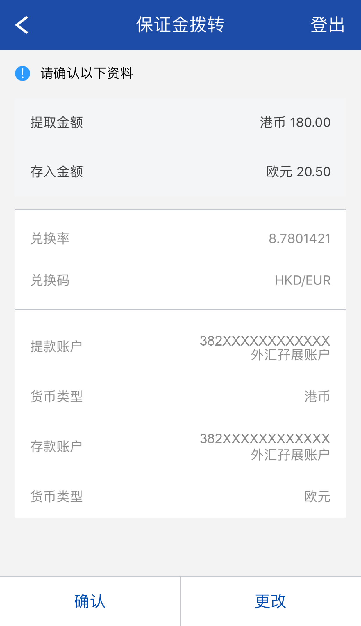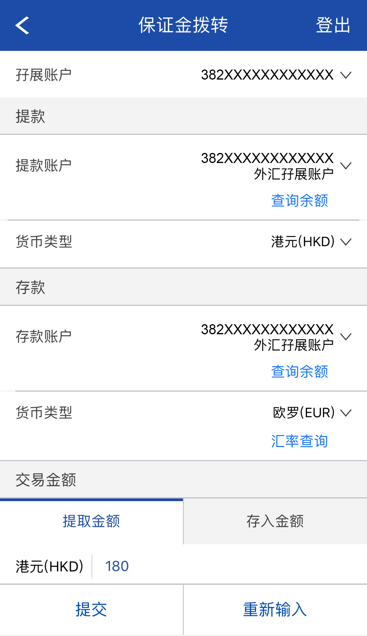 本行账户(香港地区)