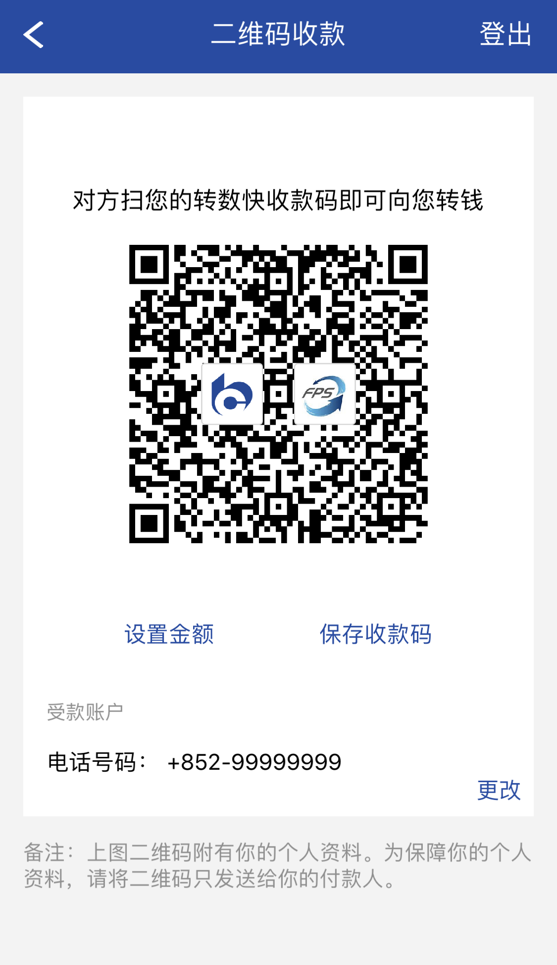 如客户欲生成转数快二维码,请于登入后按页面下方的收款按钮。