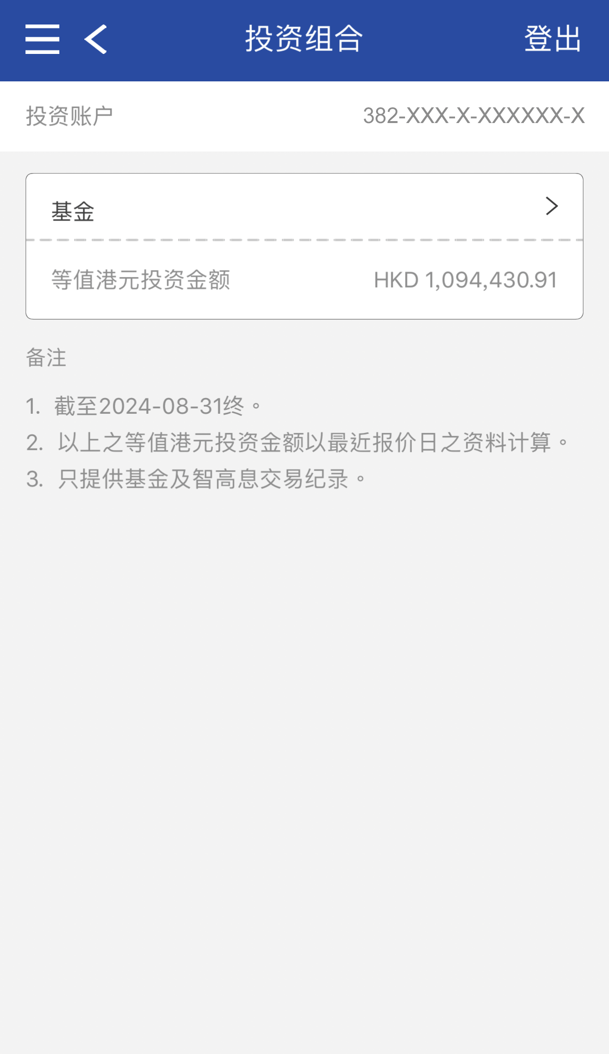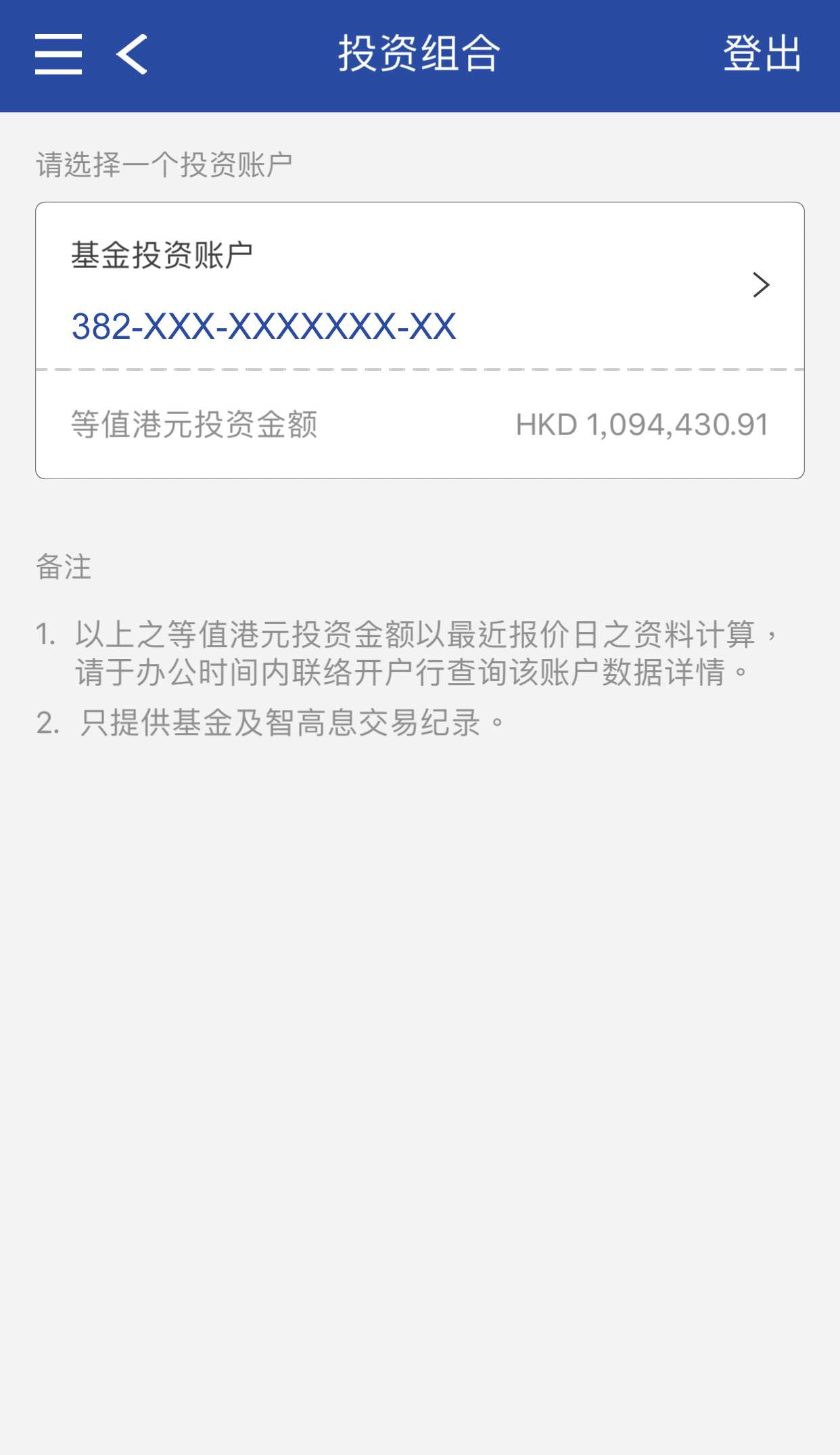 本行账户(香港地区)