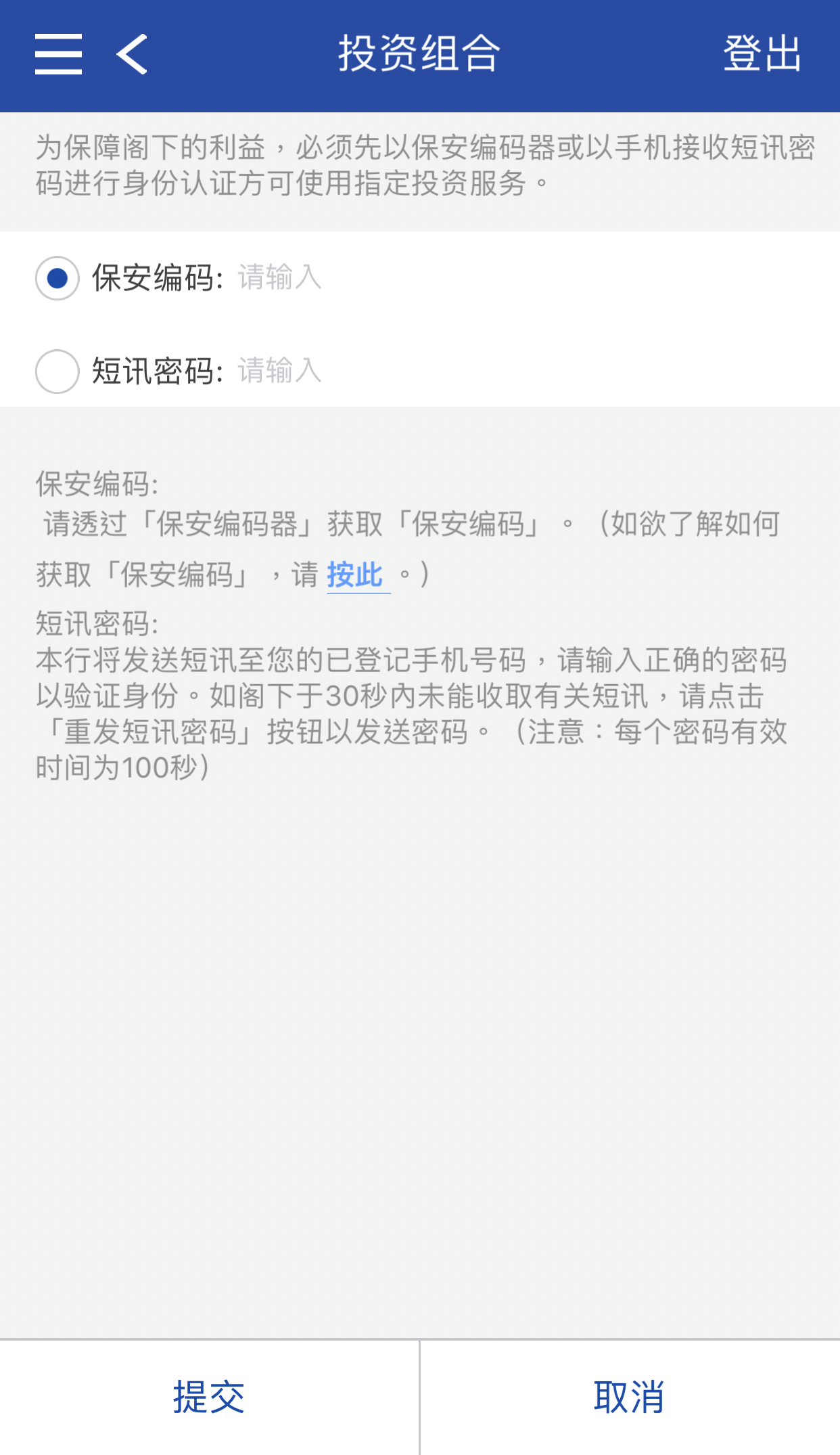 保安编码或短讯密码后按