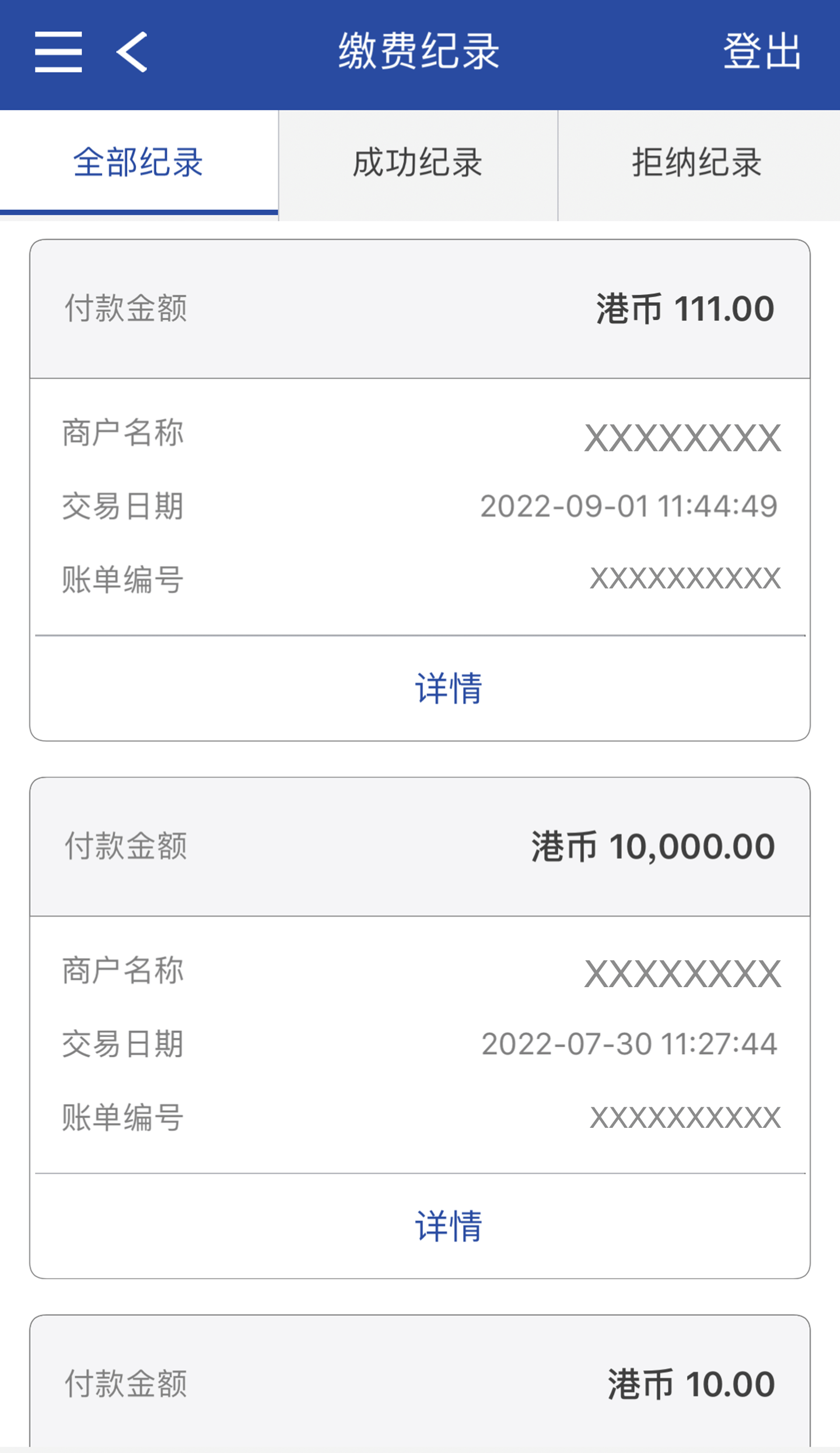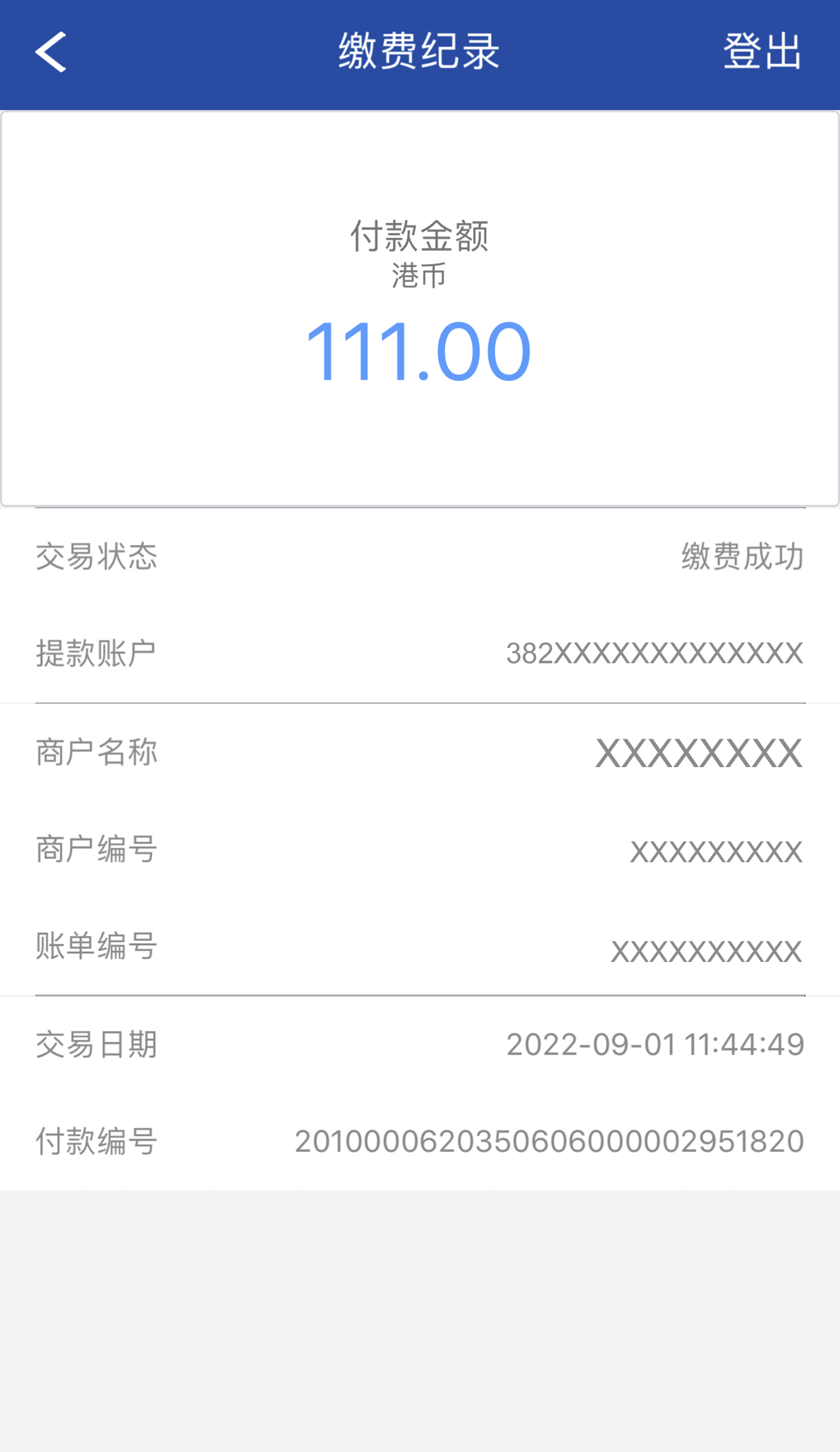 按下详情后,缴费纪录显示该笔交易的资讯。