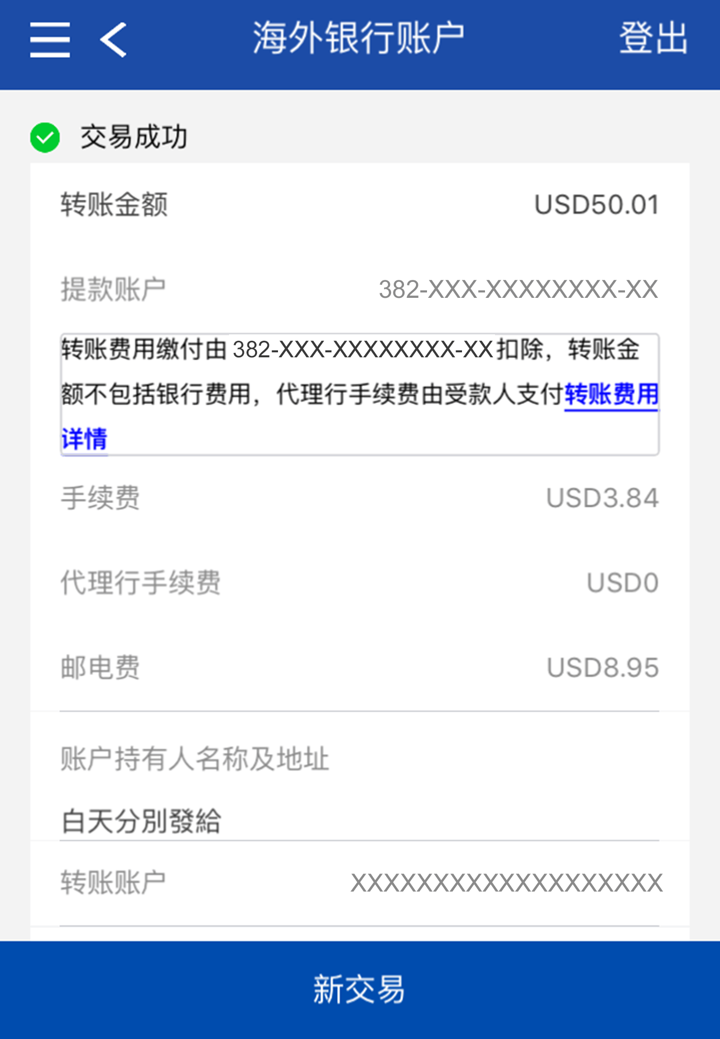 以汇款方式将款项转账至其他海外银行已登记账户。