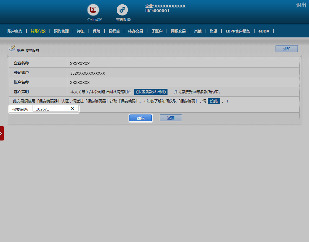 核对已输入的交易资料正确或更改有关资料后,请同时使用保安编码器进行认证,再按「确认」提交指示。