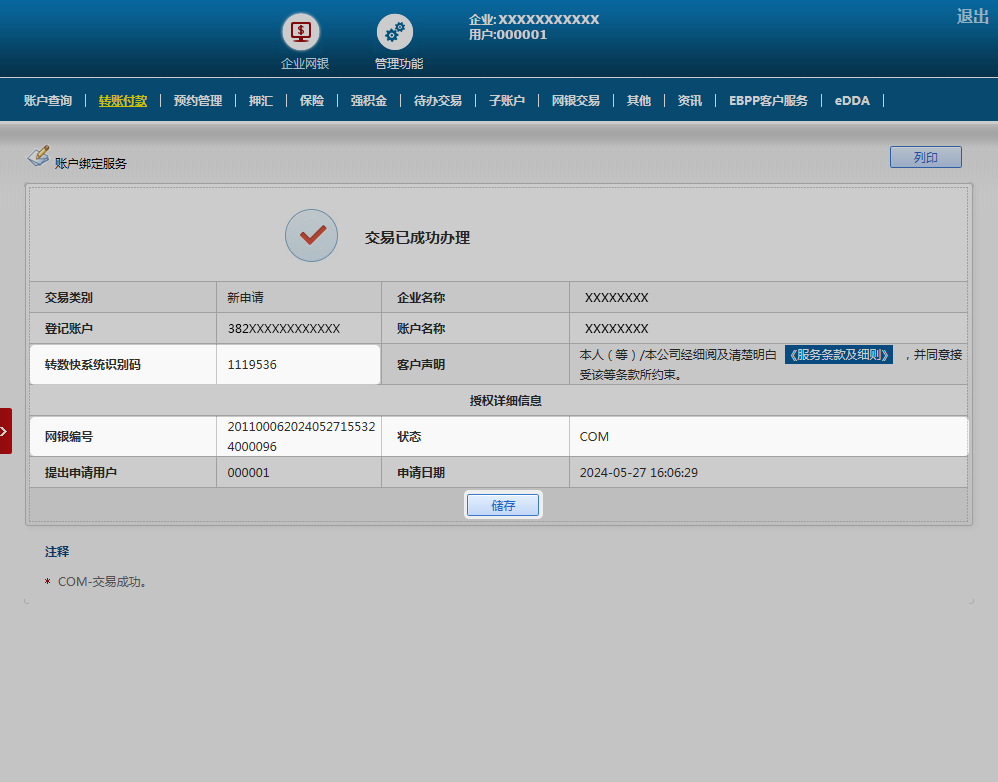 交易完成后,页面将显示交易成功及转数快识别码。您可按「储存」有关页面以作记录。