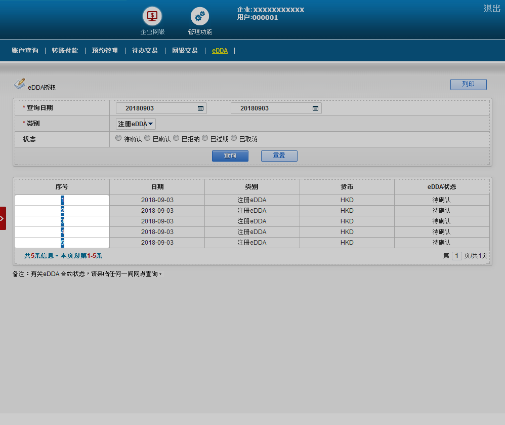 注: 若客户收到eDDA 指示后,需于5天内对该指示进行授权操作,否则该eDDA指示将会因过期而失效。