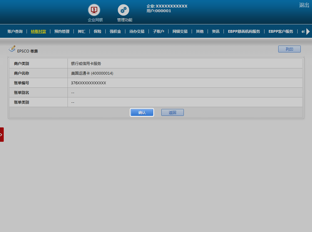 核对已输入的账单资料正确或更改有关资料,再按「确认」。