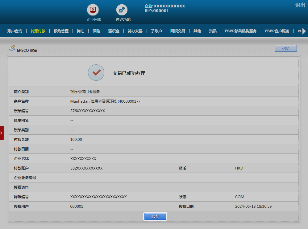 您可按「储存」账单资料,日后可点击「缴费」按钮直接进行缴费。