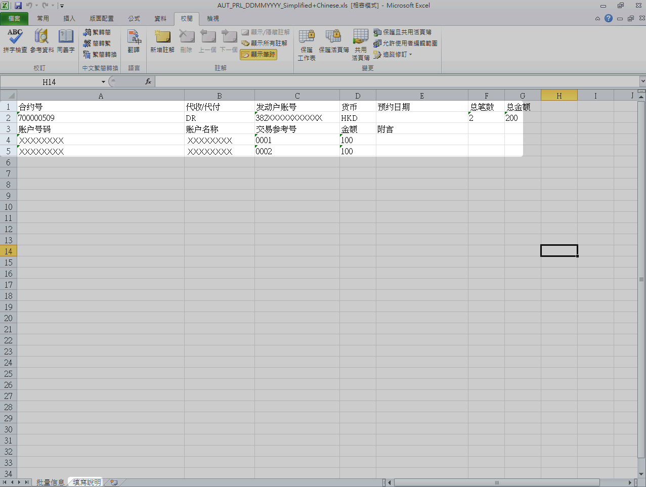 如代收 / 代付 / 发薪合约模式范本的下载档案名称: AUT_PRL_DDMMYYYY.xls。
