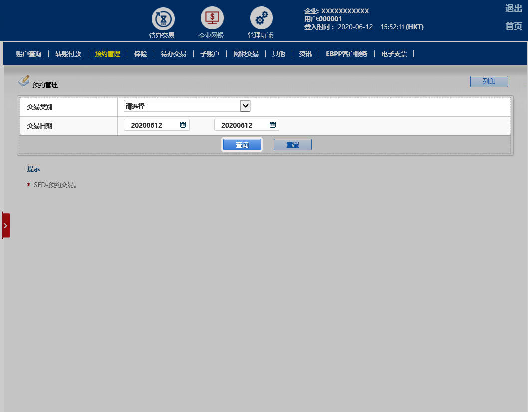 选择「预约管理」然后选择「交易类别」及「交易日期」,再按「查询」。