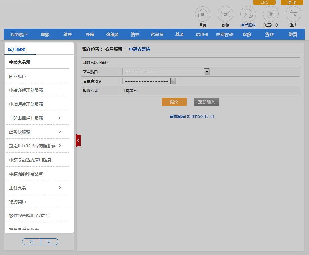 | • | 申请支票簿 - 申请以平邮方式邮寄支票簿; |