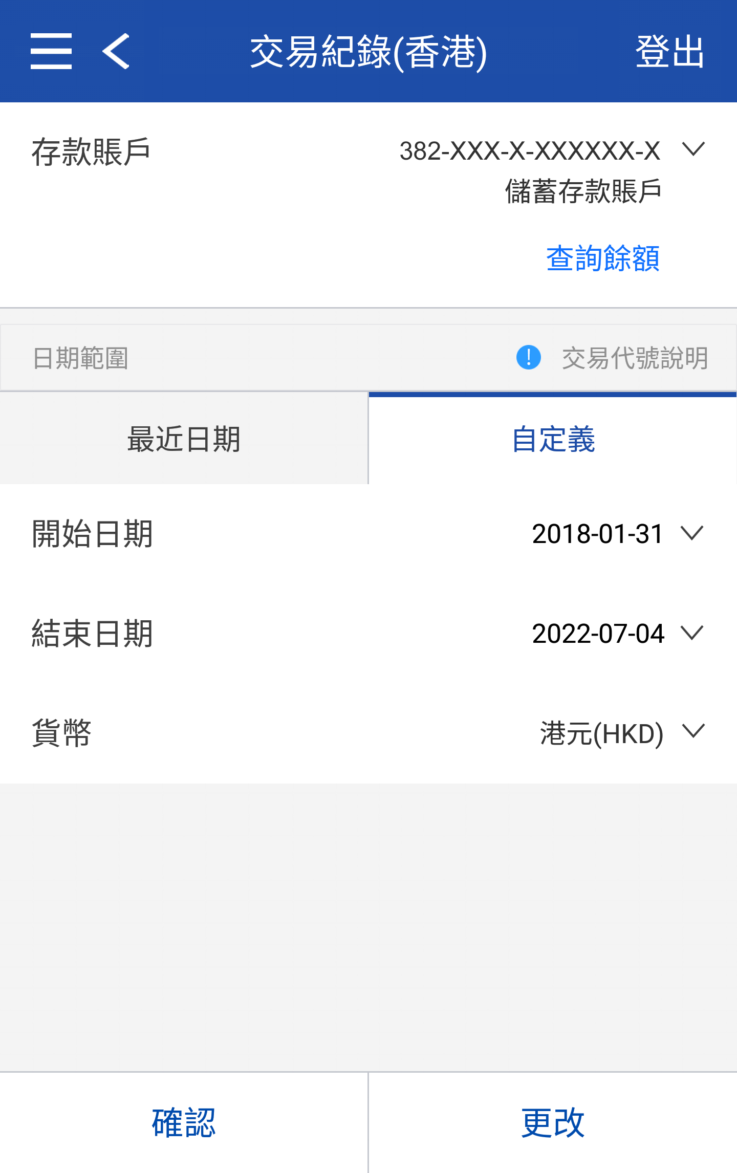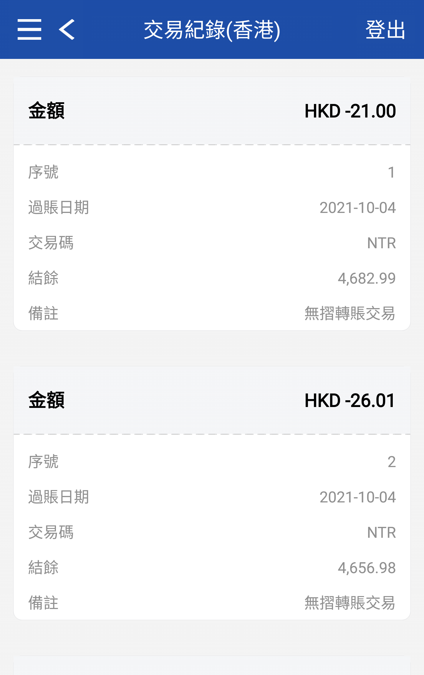 版面會根據篩選條件顯示相關賬戶的交易資料。