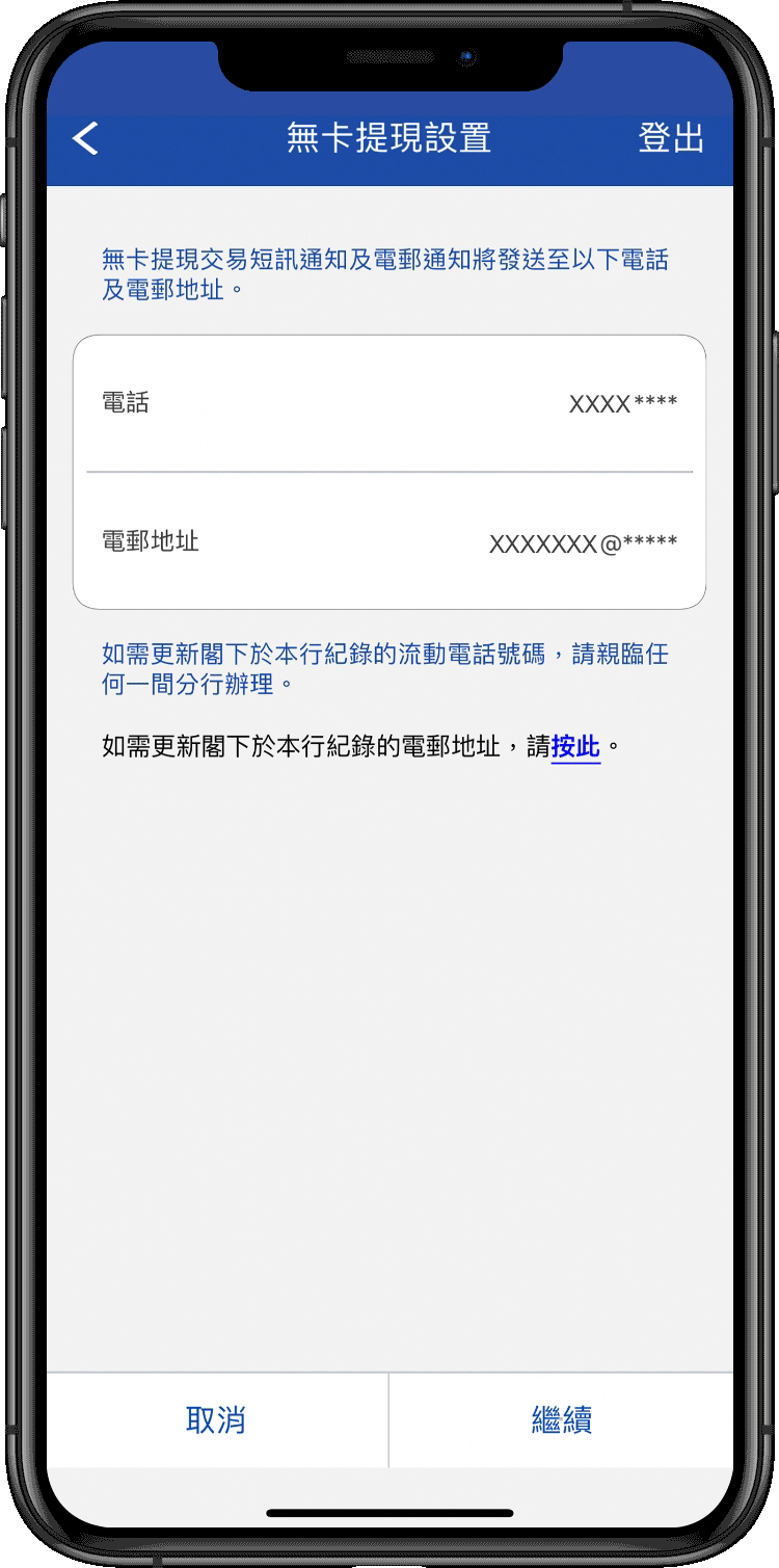 確認您在本行紀錄的流動電話號碼及電郵地址。