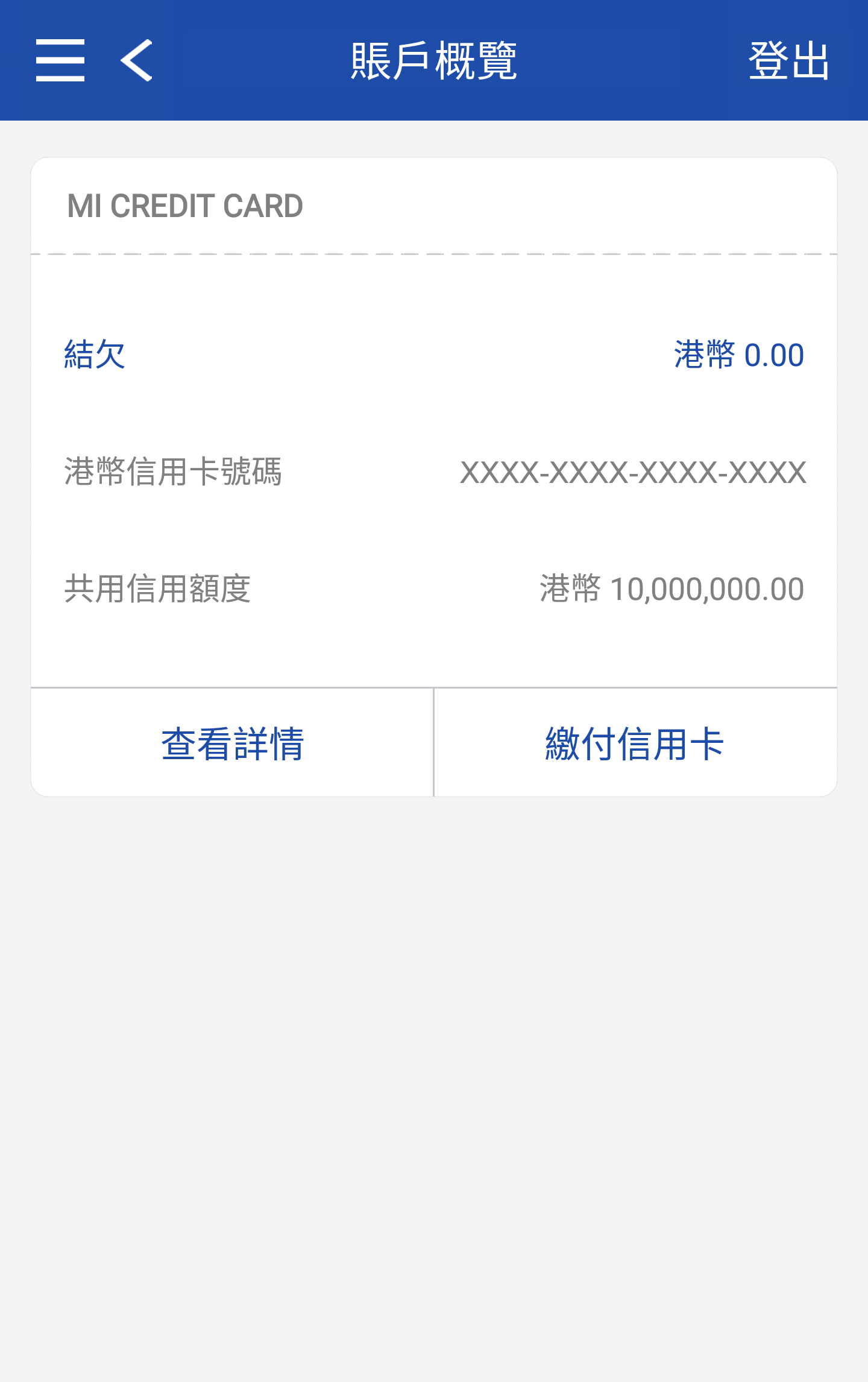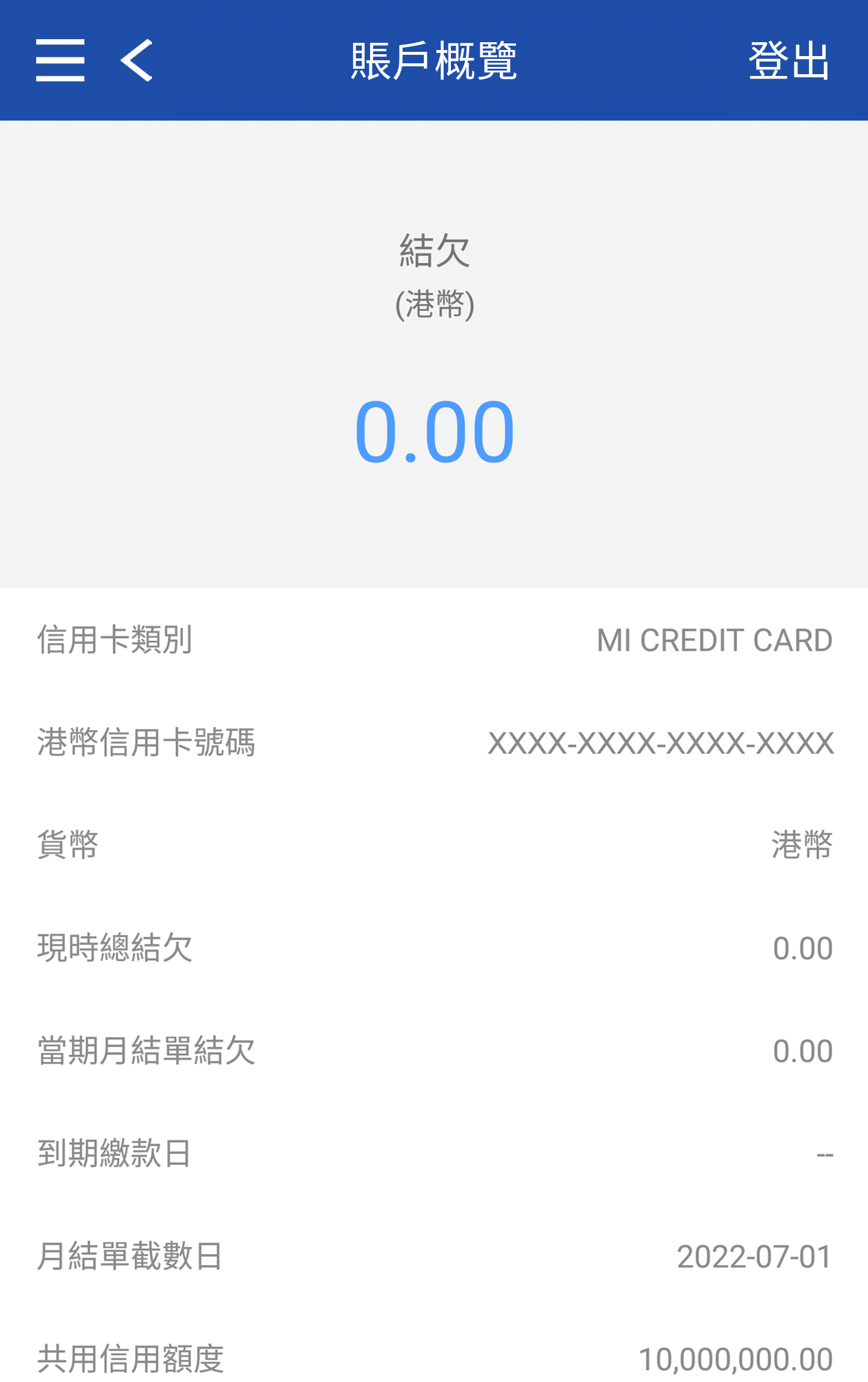 按下後可顯示該信用卡的類別,結欠及到期日。