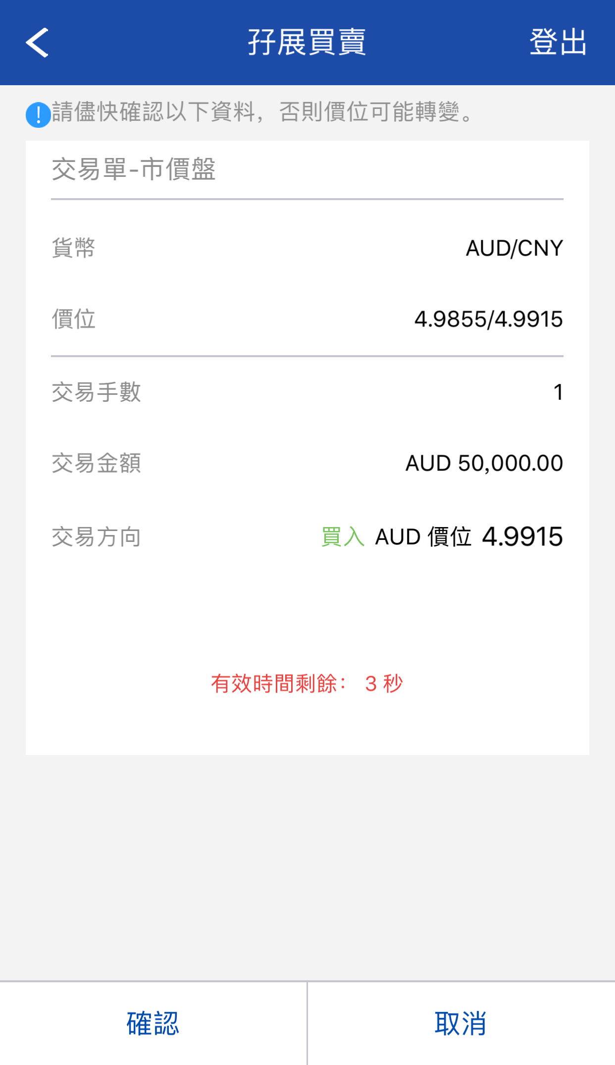 ,如欲取消交易可按