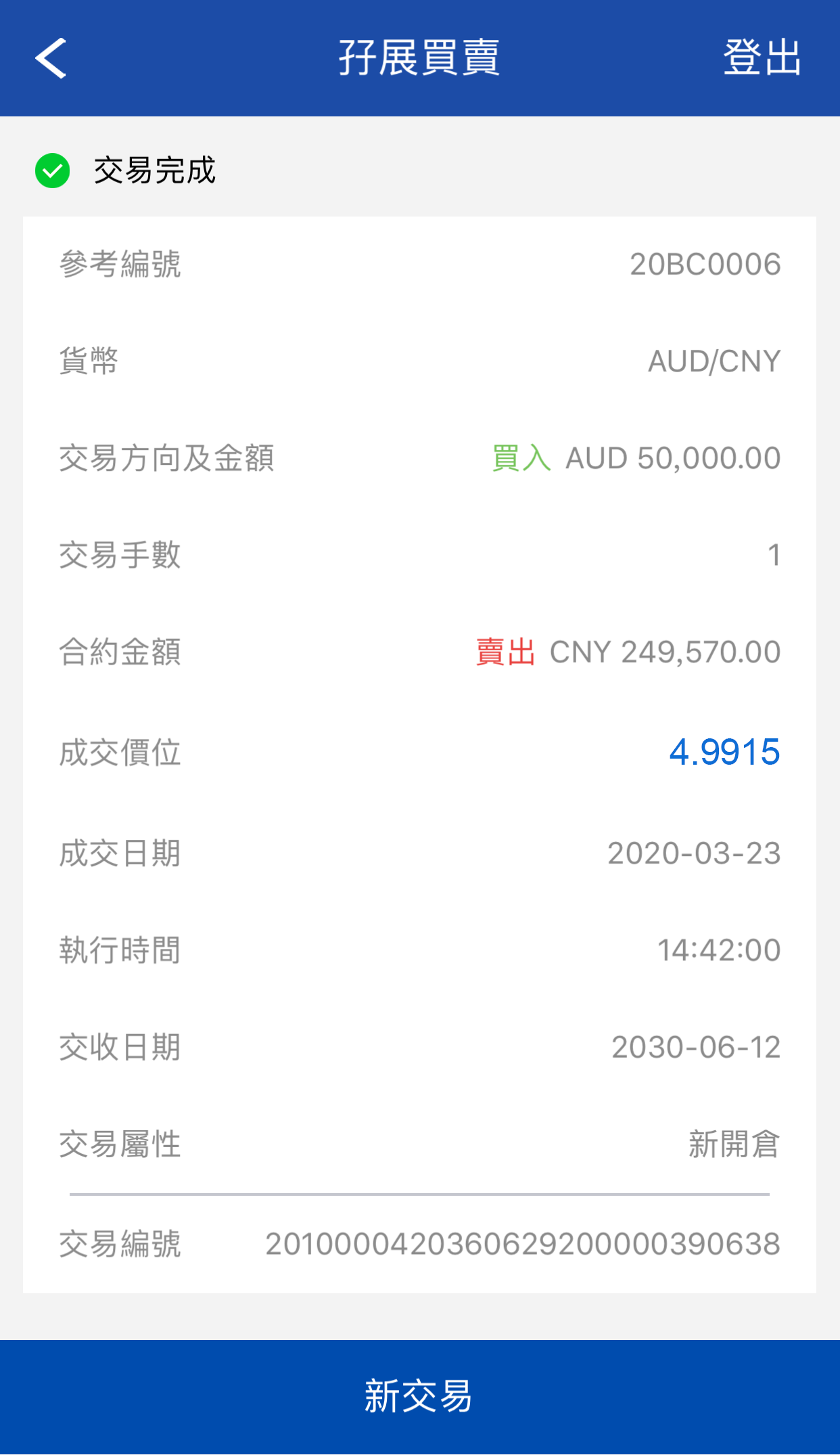 交易完成。