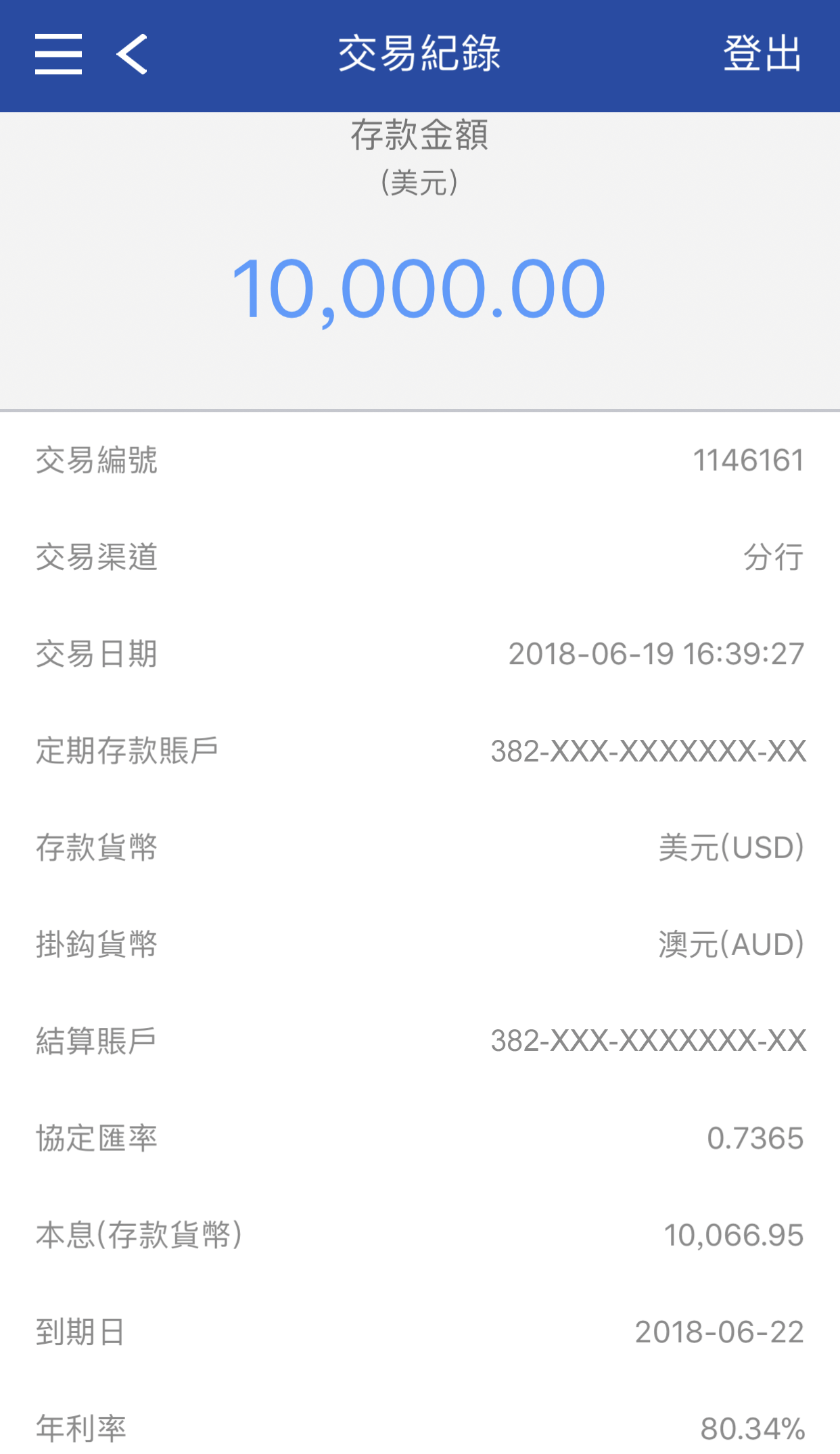 版面會根據客戶選擇顯示相關智高息交易詳情。