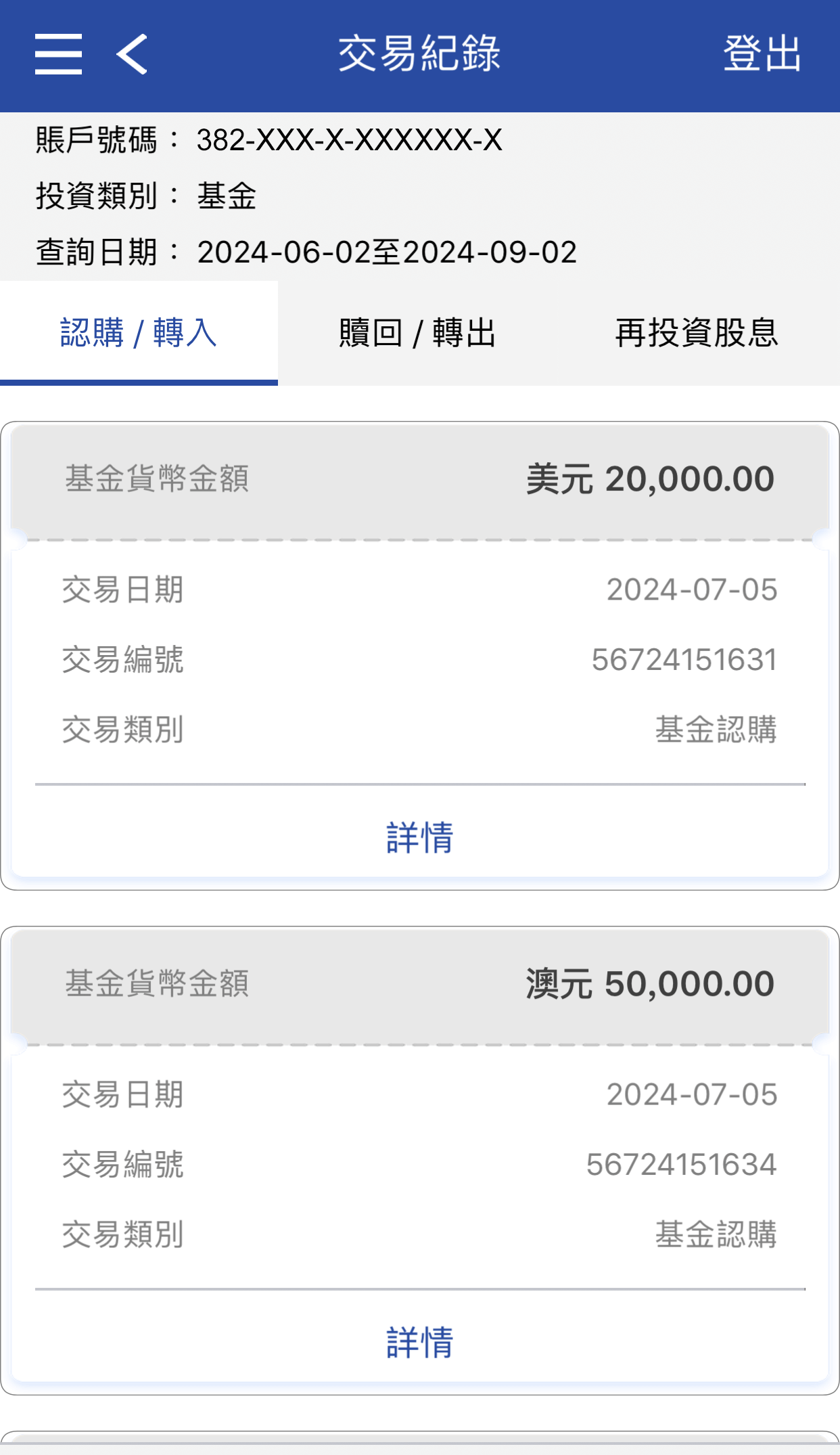 客戶可查詢已認購基金、贖回基金、及再投資股息詳情。