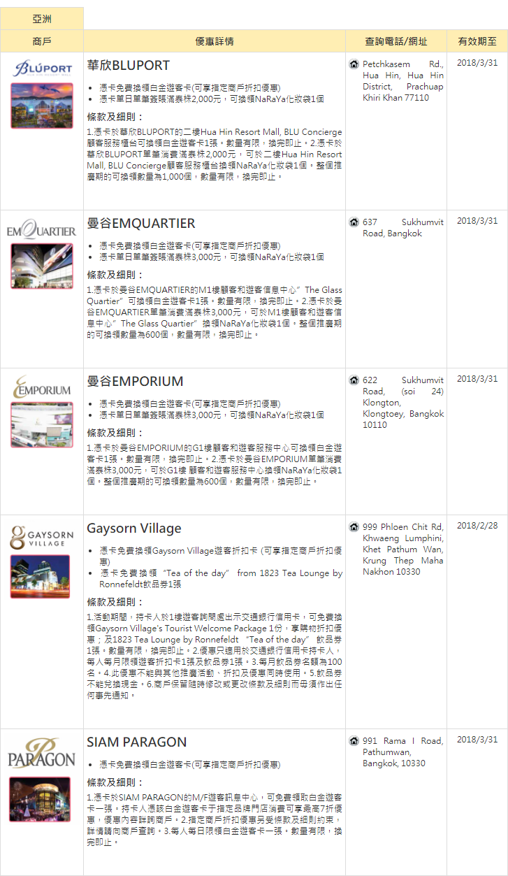 - 所有優惠只適用於由交通銀行(香港)有限公司(「銀行」)於香港發出的交通銀行信用卡及銀行不時指定的其他信用卡(「合資格信用卡」)的客戶(「持卡人」),包括主卡及附屬卡,惟不包括禮物卡及PC網上卡。