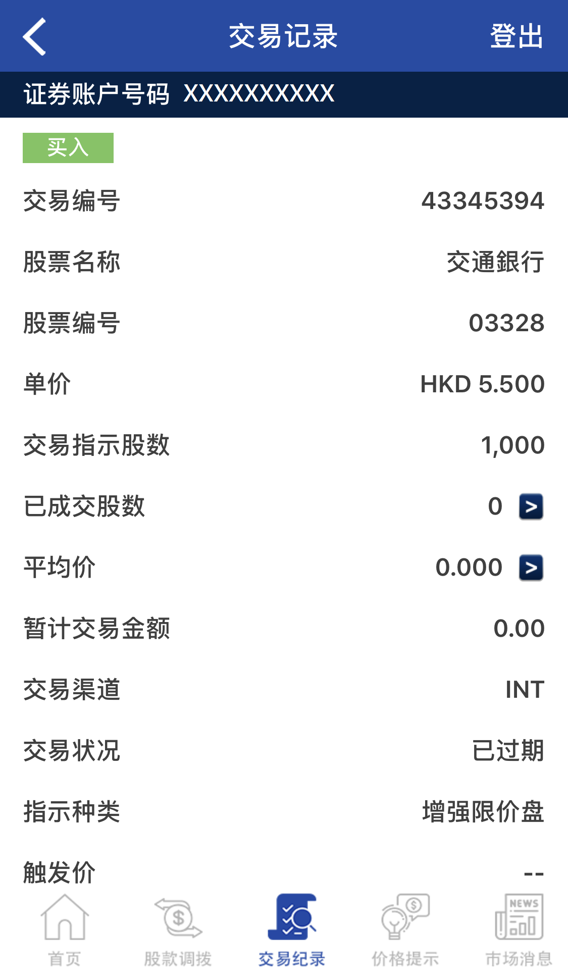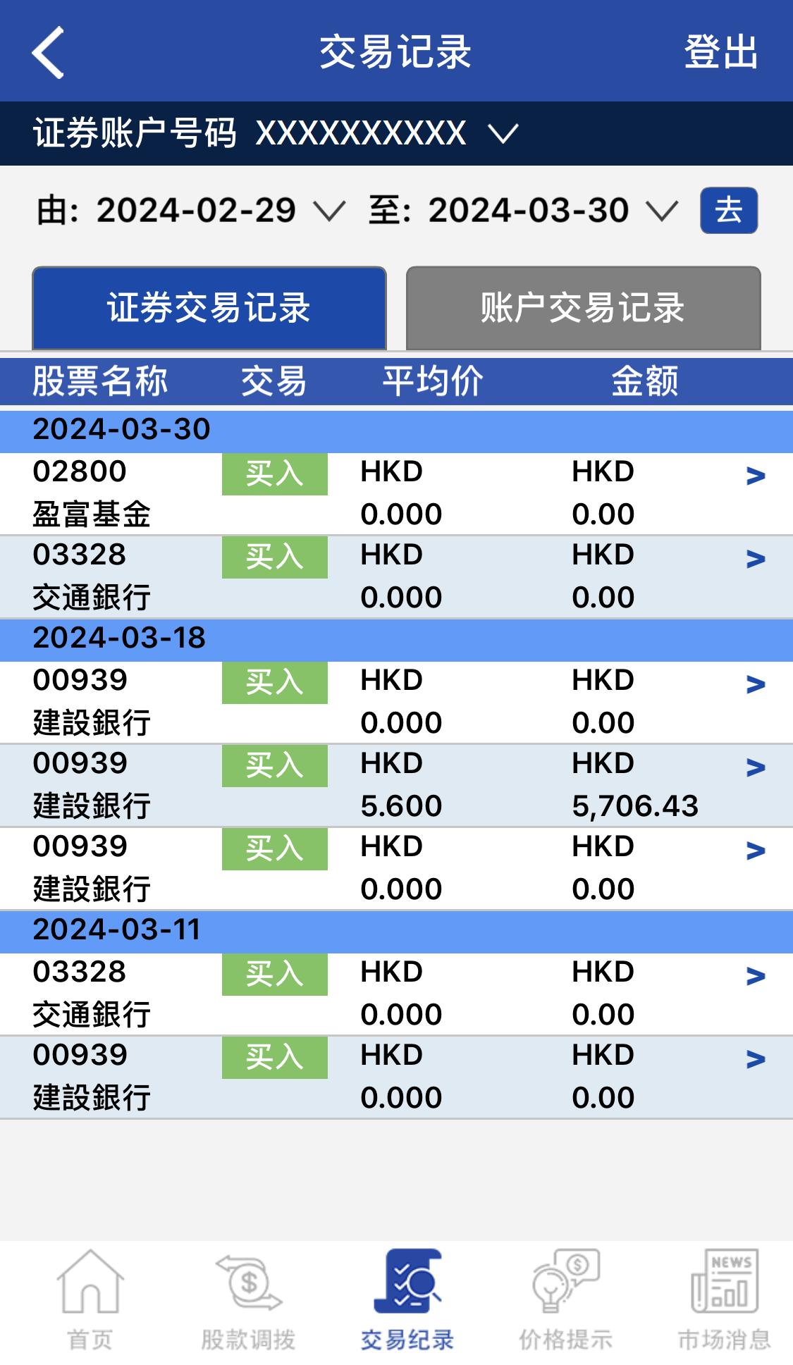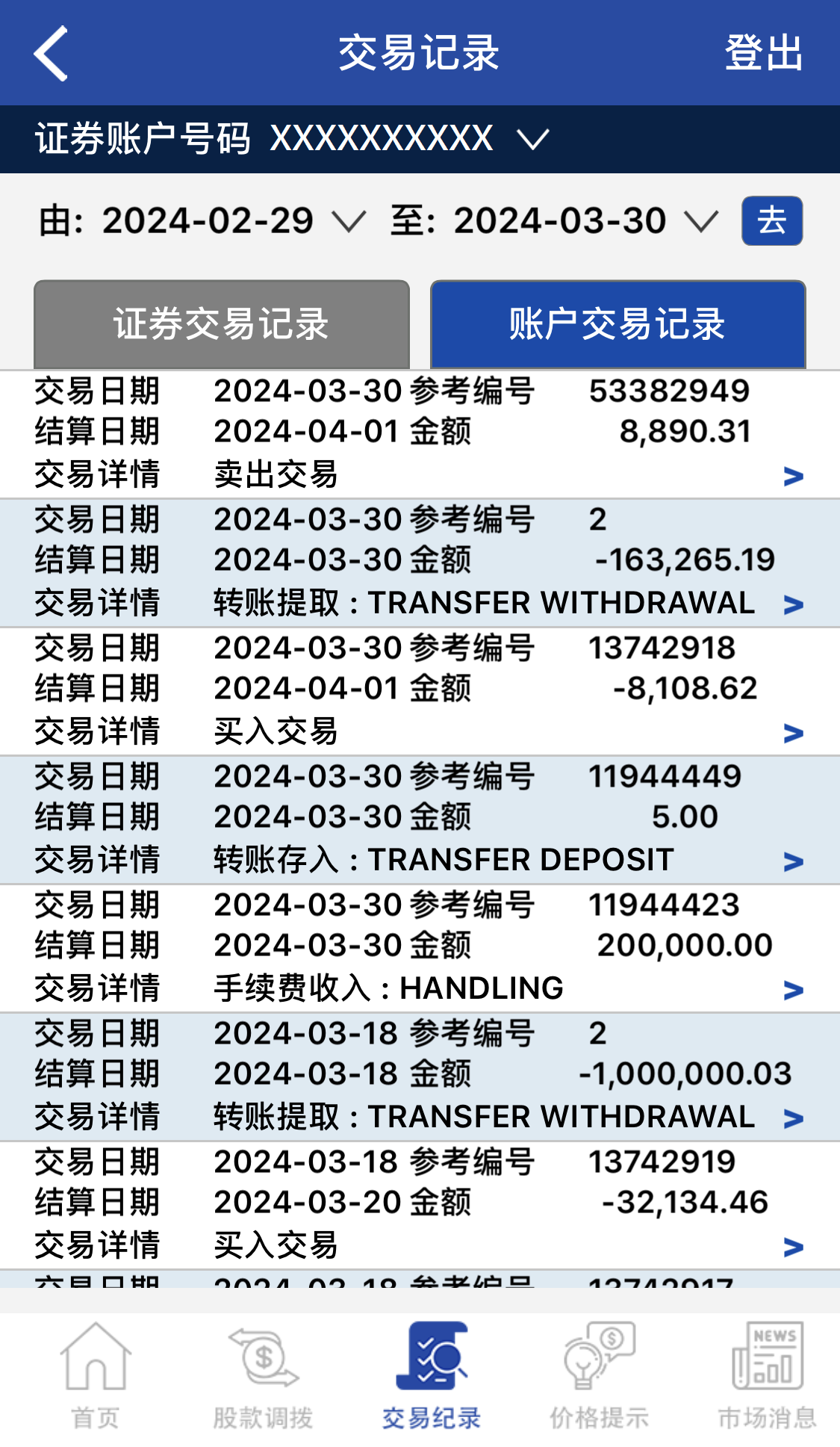 账户交易记录显示指定时段内证券账户之现金交易记录。