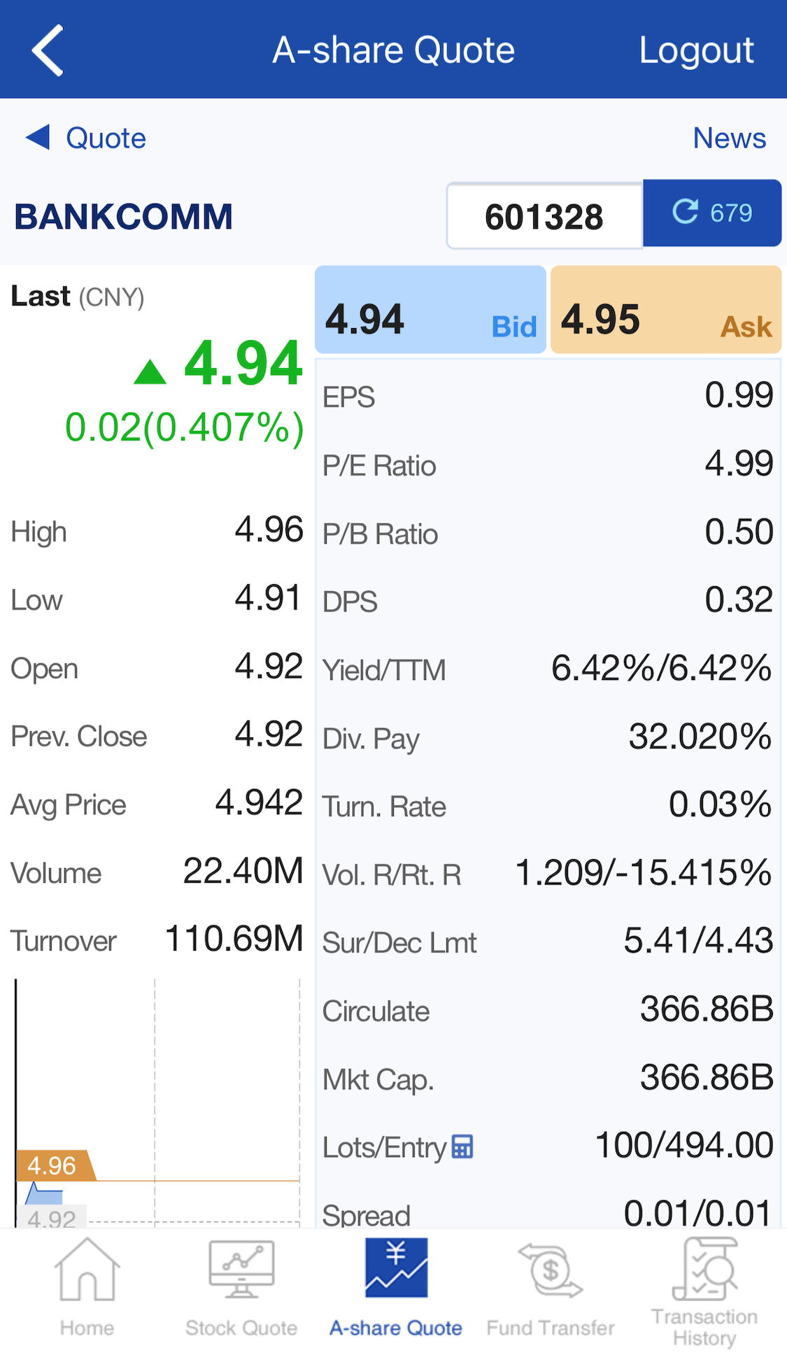 Upon logging in, the A-share Quote is real time and the Quote Meter will illustrate the quote balance (quote balance of A-share will share the quote balance of Hong Kong stock).