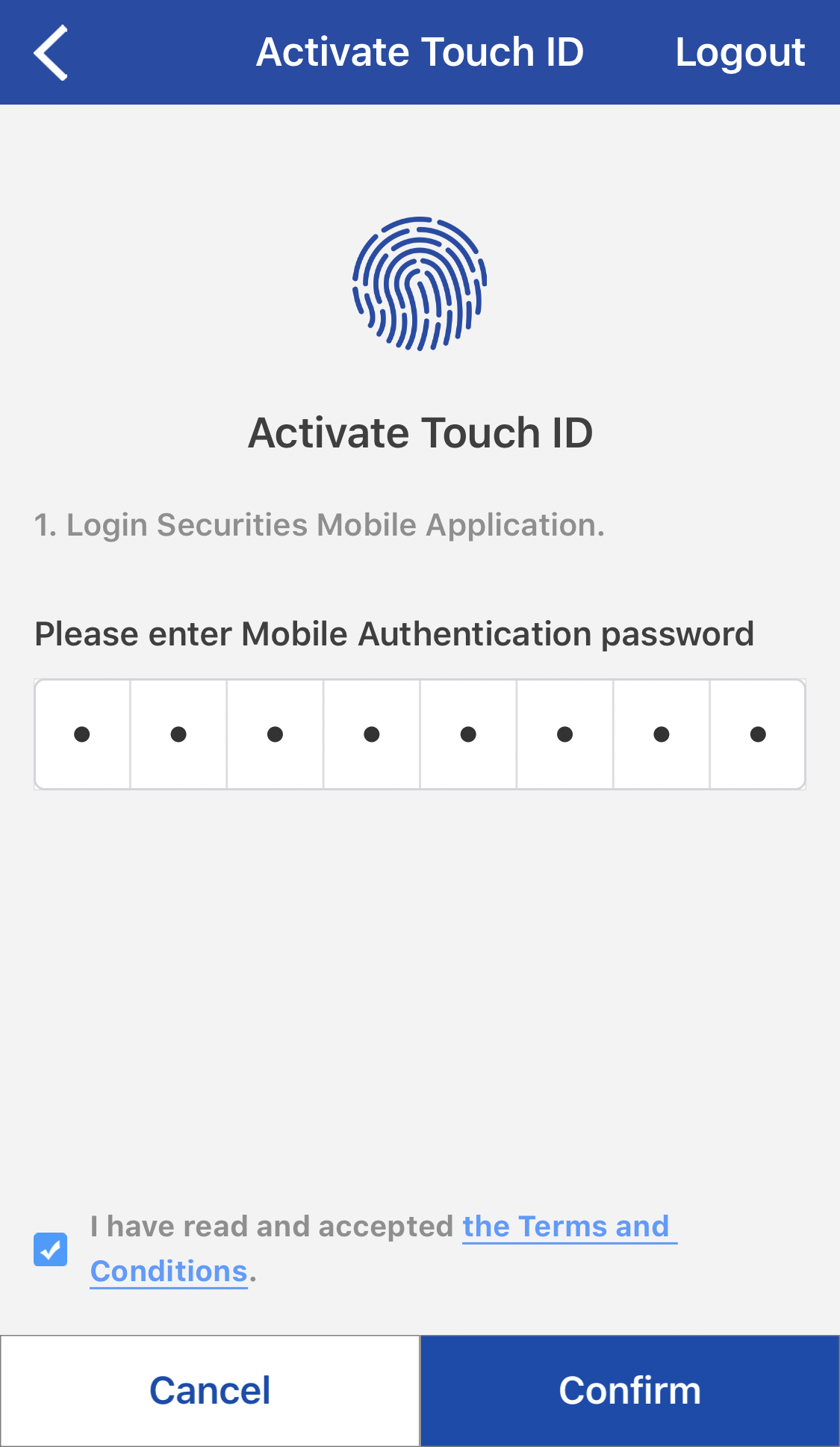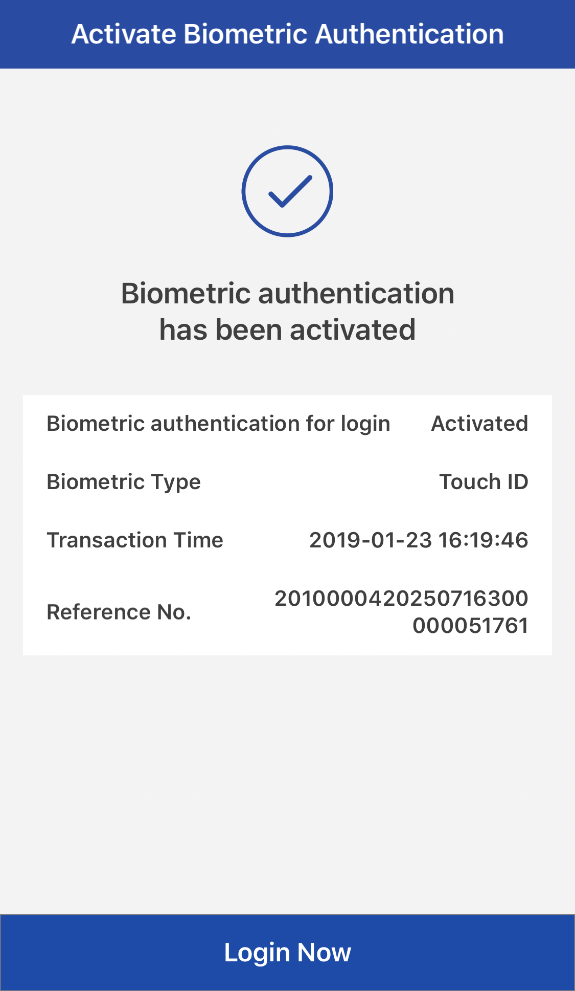 Biometric Authentication has been activated successfully. You can now log onto Securities Mobile App using your "Biometric Authentication".
